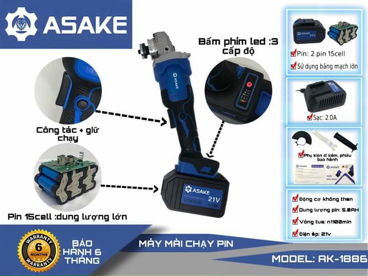 Sản phẩm được mua bao gồm - Đá mài - Khóa lục giác - Tay cầm phụ Đặc điểm nổi bật - Máy sử dụng công tắc trượt hông tiện lợi, dễ dàng thao tác