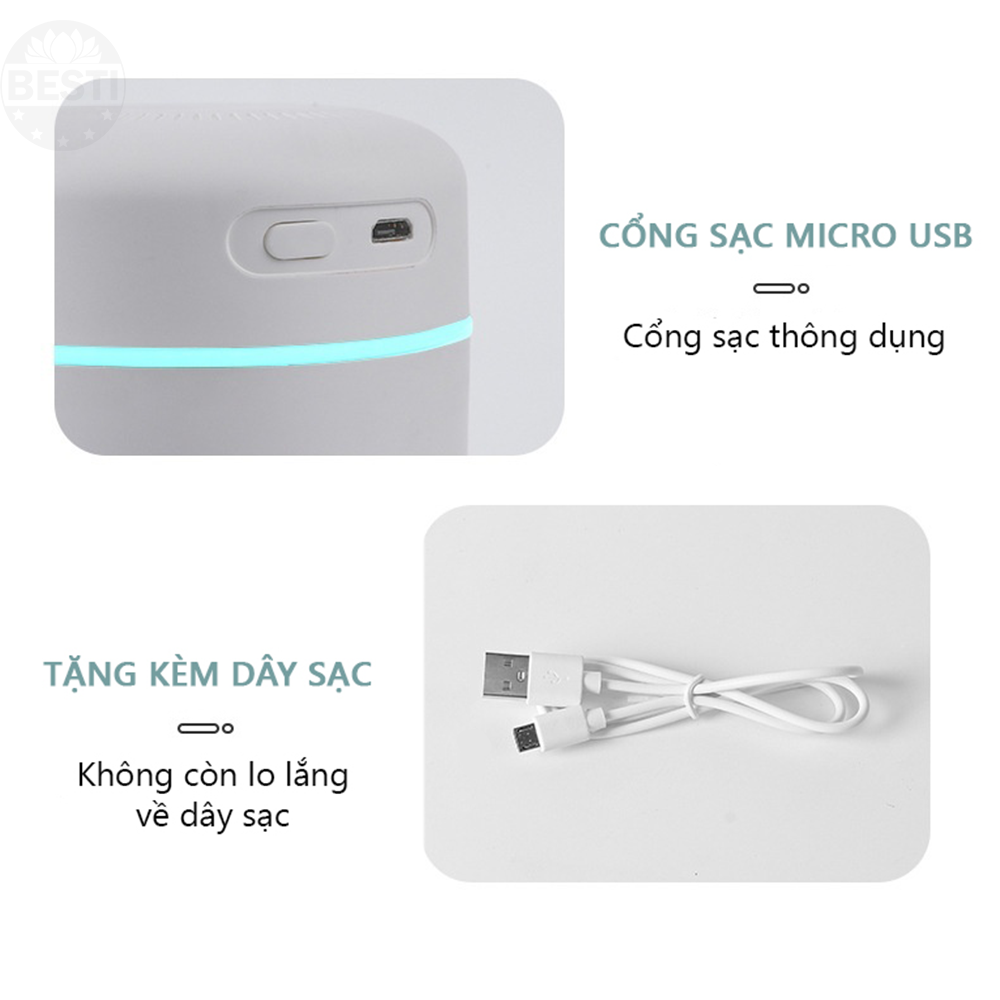 - Máy phun sương, máy tạo ẩm, máy xông tinh dầu Besti không gây tiếng ồn, trang bị đèn ngủ có thể tùy chỉnh, siêu tiết kiệm điện