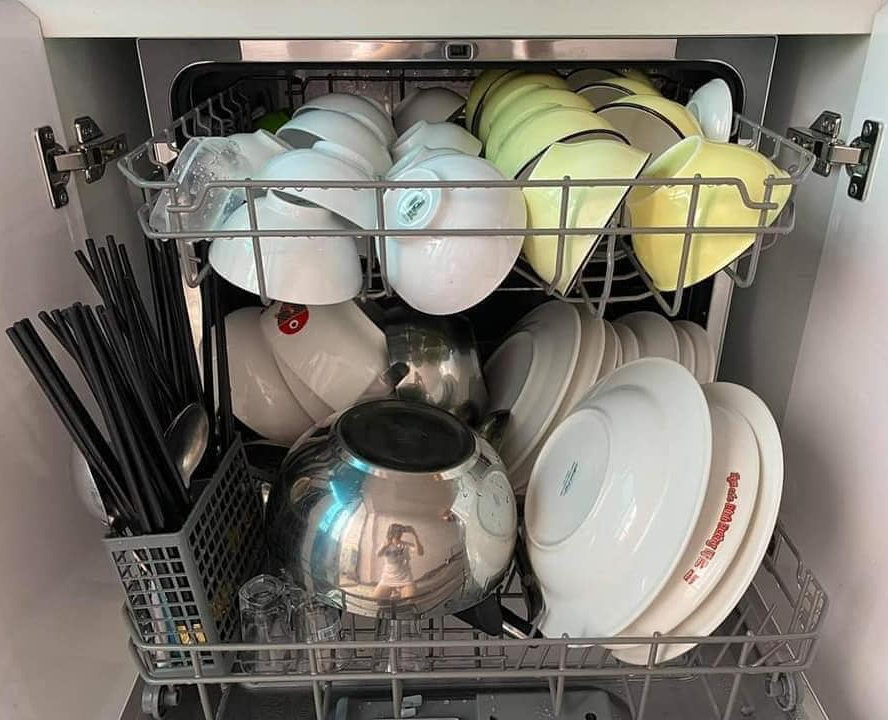 - Máy có dung tích chứa tới 8 bộ bát đĩa, với trang bị 2 khay chứa giúp bạn có thể sắp xếp bát đĩa, chén, phụ kiện nhà bếp đa dạng với nhiều kích thước khác nhau