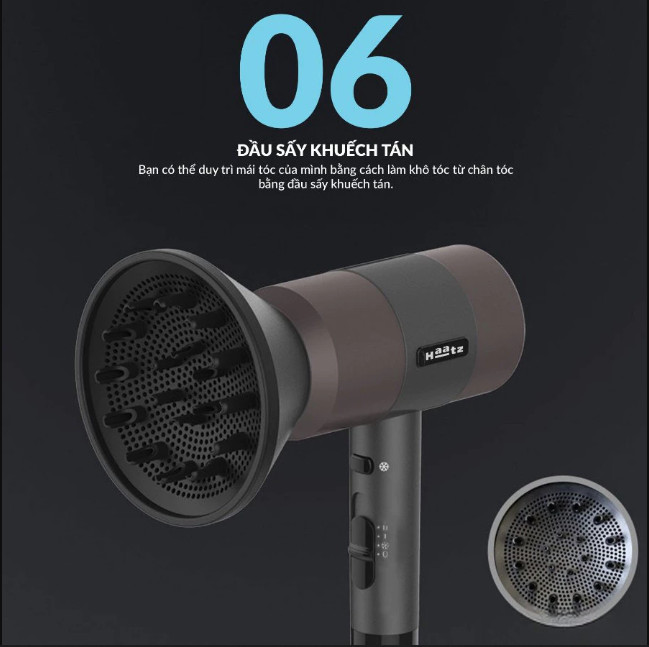 Máy sấy tóc HAATZ CIM908 là sản phẩm cao cấp được thiết kế dành riêng cho những ai yêu thích chăm sóc tóc tại nhà. Với nhiều tính năng vượt trội như 3 mức gió thông minh, đầu sấy khuếch tán và đầu sấy tập trung, cùng với chức năng làm mát tức thì, sản phẩm giúp bạn dễ dàng sấy khô và tạo kiểu tóc một cách nhanh chóng, hiệu quả.