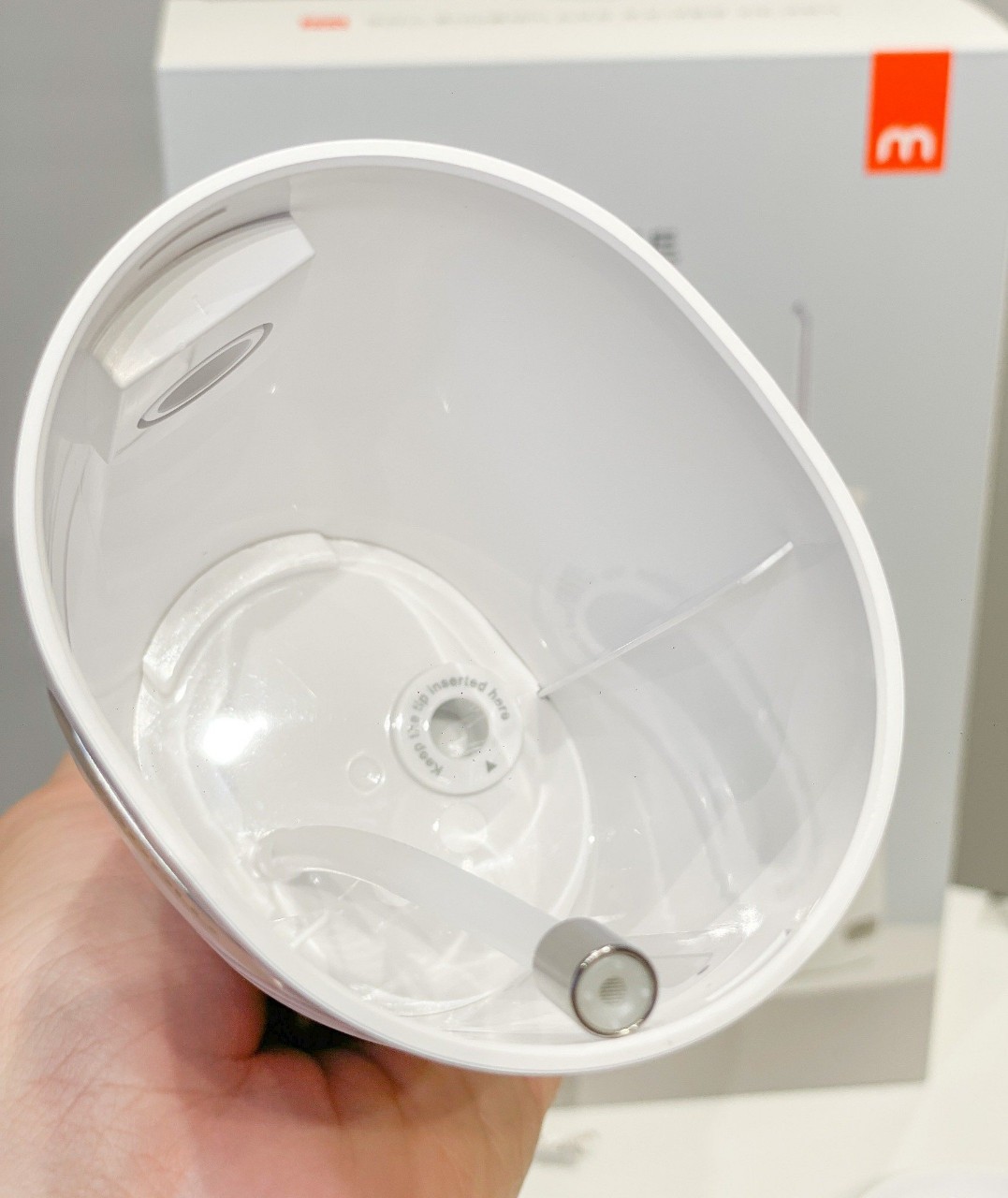 - Đầu tăm có chỗ đựng viên trắng răng , sử dụng tia nước đẩy các tinh chất trắng răng len lỏi bề mặt và kẽ răng, giúp tăng cường hiệu quả làm trắng răng.