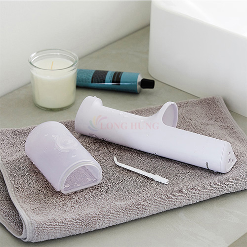 - Đầu tăm có chỗ đựng viên trắng răng , sử dụng tia nước đẩy các tinh chất trắng răng len lỏi bề mặt và kẽ răng, giúp tăng cường hiệu quả làm trắng răng.