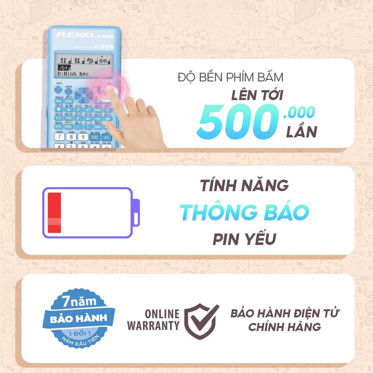 Máy Tính Khoa Học Flexio(Đen) Fx799Vn Máy tính khoa học Flexio là chiếc máy tính có nhiều tính năng nhất, lên tới 529 tính năng trong đó bổ sung 17 tính năng nổi bật :