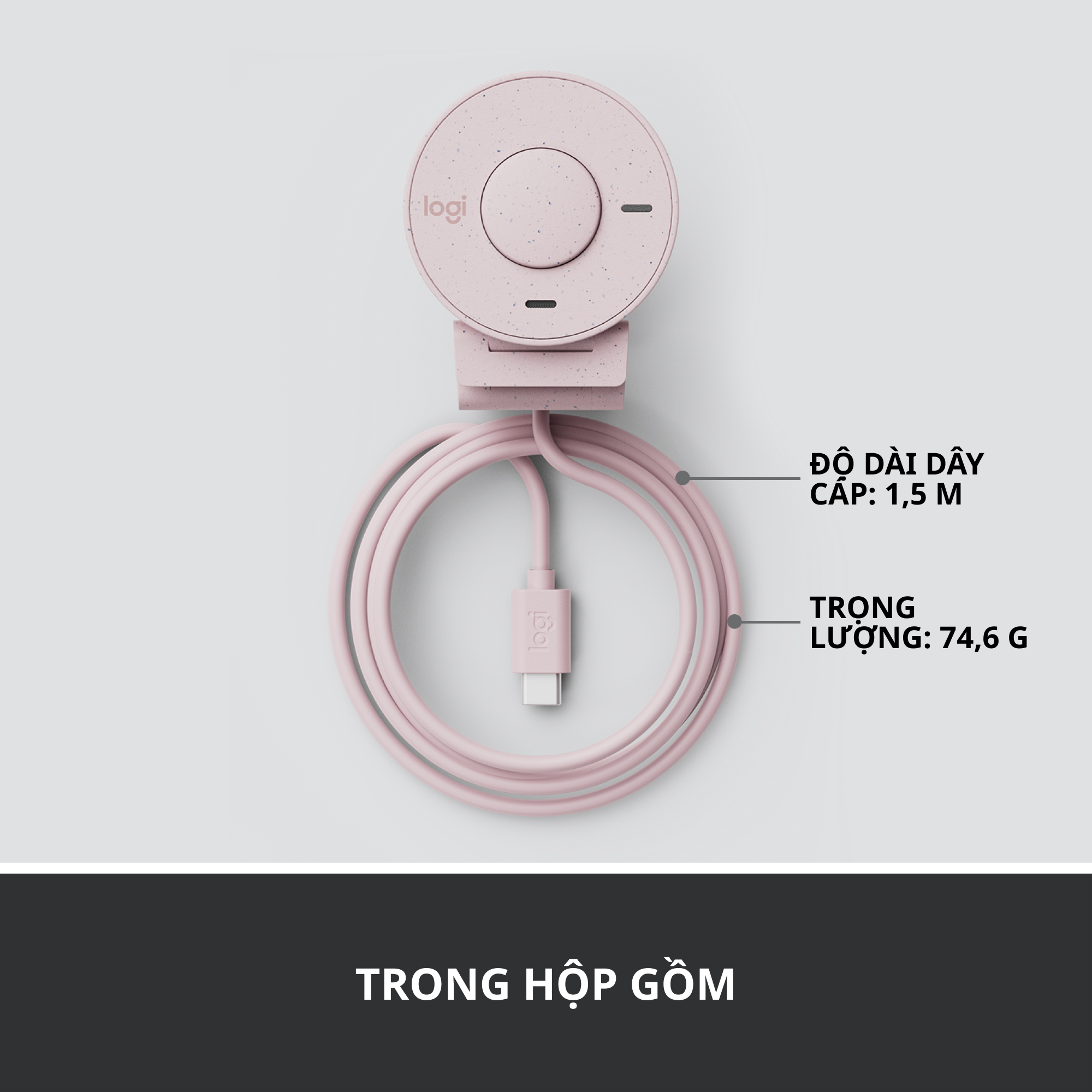 Webcam Full HD Logitech Brio 300 Màn che ống kính, Micrô giảm tiếng ồn, USB-C, được chứng nhận cho Zoom, Microsoft Teams, Google Meet, tự động điều chỉnh Ánh sáng