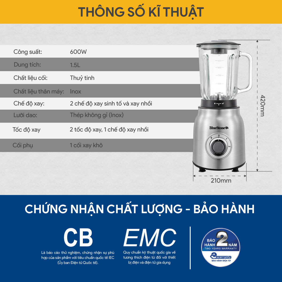 ✨Máy Xay Sinh Tố BlueStone BLB-5341 1.5 Lít 600W - Hàng Chính Hãng