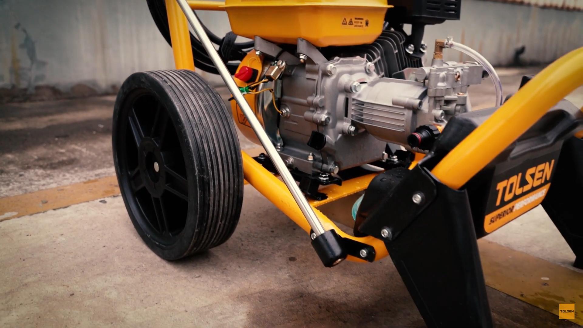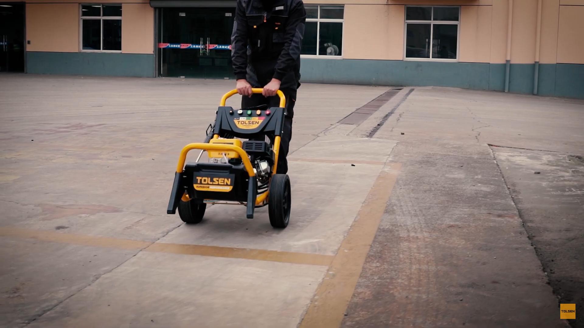 Thương hiệu Tolsen chuyên thiết kế, sản xuất, lắp ráp, cung cấp các thiết bị và dụng cụ công nghiệp dân dụng cỡ lớn và các loại dụng cụ cầm tay đa năng chuyên nghiệp nổi tiếng về chất lượng và hậu mãi tuyệt vời. Các công cụ TOLSEN tập trung vào việc chế tạo các dụng cụ cầm tay chất lượng chuyên nghiệp và các sản phẩm phần cứng liên quan. Tất cả các sản phẩm của TOLSEN đều được kiểm soát chặt chẽ ở mọi bước trong quá trình thiết kế, sản xuất, đóng gói và kiểm soát chất lượng. Các công cụ TOLSEN tin rằng các công cụ chất lượng đề cập đến khả năng sử dụng, hiệu quả và hiệu suất Tolsen có phạm vi sản phẩm khá rộng rãi với trên 2000 sản phẩm bao gồm đủ dụng cụ cầm tay, dụng cụ cơ khí, dụng cụ buộc chặt, dụng cụ cắt, dụng cụ đo, dụng cụ vẽ, vật phẩm PPE, phụ kiện dụng cụ điện, túi và dụng cụ cách điện, Thông số kĩ thuật -Mã sản phẩm: 79576 -Thương hiệu: TOLSEN -Xuất xứ: Trung Quốc -Công suất tối đa: 7.0Hp / 5250W -Tối đa Áp suất: 220Bar (3190PSI) -Áp suất định mức: 180Bar (2610PSI) -Tốc độ dòng chảy: 8,3L / phút -Loại bơm: Cam trục 3 piston Bơm-Nhôm -Loại động cơ: OHV 4 thì -Hệ thống khởi động: giật -Tốc độ động cơ: 3600RPM -Thể tích nhiên liệu: 3.6L -Khối lượng dầu: 0,6L -Loại nhiên liệu: Gasonline không chì -Khối lượng tịnh: 29kg -1 cây thương kim loại -1 còi phun kim loại -Ống áp lực 8m -Năm đầu phun: 0 °, 15 °, 25 °, 45 °, 60 ° -Đóng gói: hộp màu