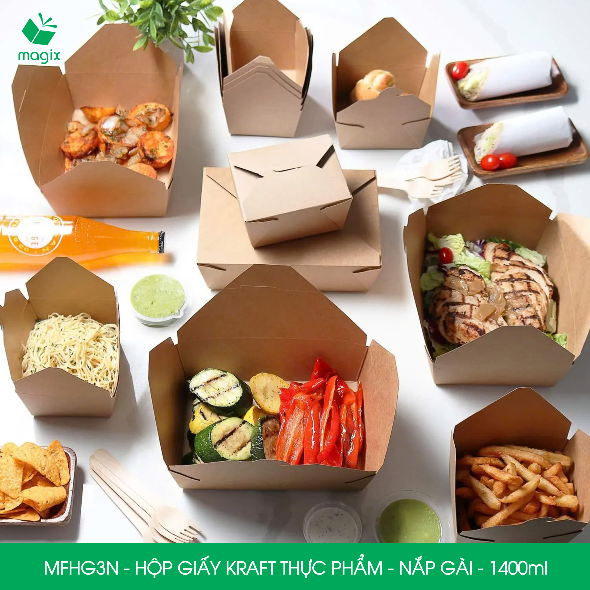 ✨MFHG3N - 25 hộp giấy kraft thực phẩm 1400ml, hộp giấy nắp gập màu nâu đựng thức ăn, hộp giấy nắp gài gói đồ ăn mang đi