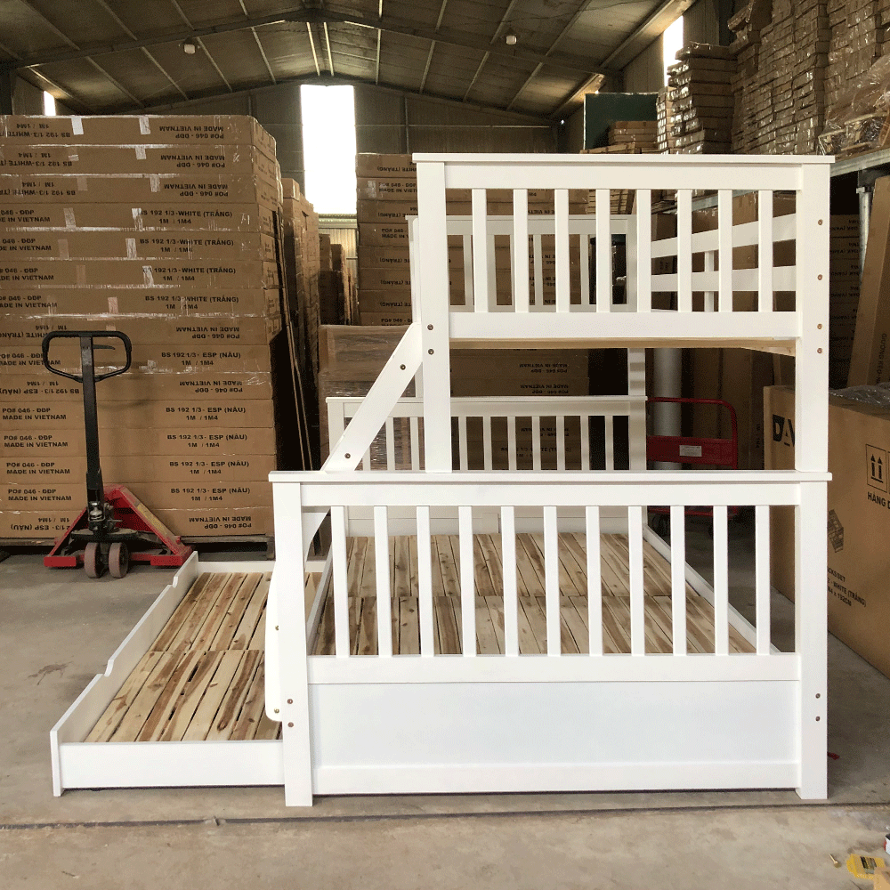 + Chất liệu: Khung giường gỗ thông Newzealand, phân tầng, Vách, đáy hộc gỗ công nghiệp, thang giường MDF chịu lực + Kích thước: kích thước phủ bì, tầng trên ưới 1mx2m Giường tầng hộp