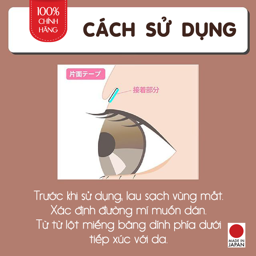 - Kích thước mỏng, dễ dàng sử dụng màu mắt lên. Dành cho trang điểm. HDSD: Trước khi sử dụng, lau sạch vùng mắt. Xác định đường mí muốn dán. Từ từ lột miếng băng dính phía trên.