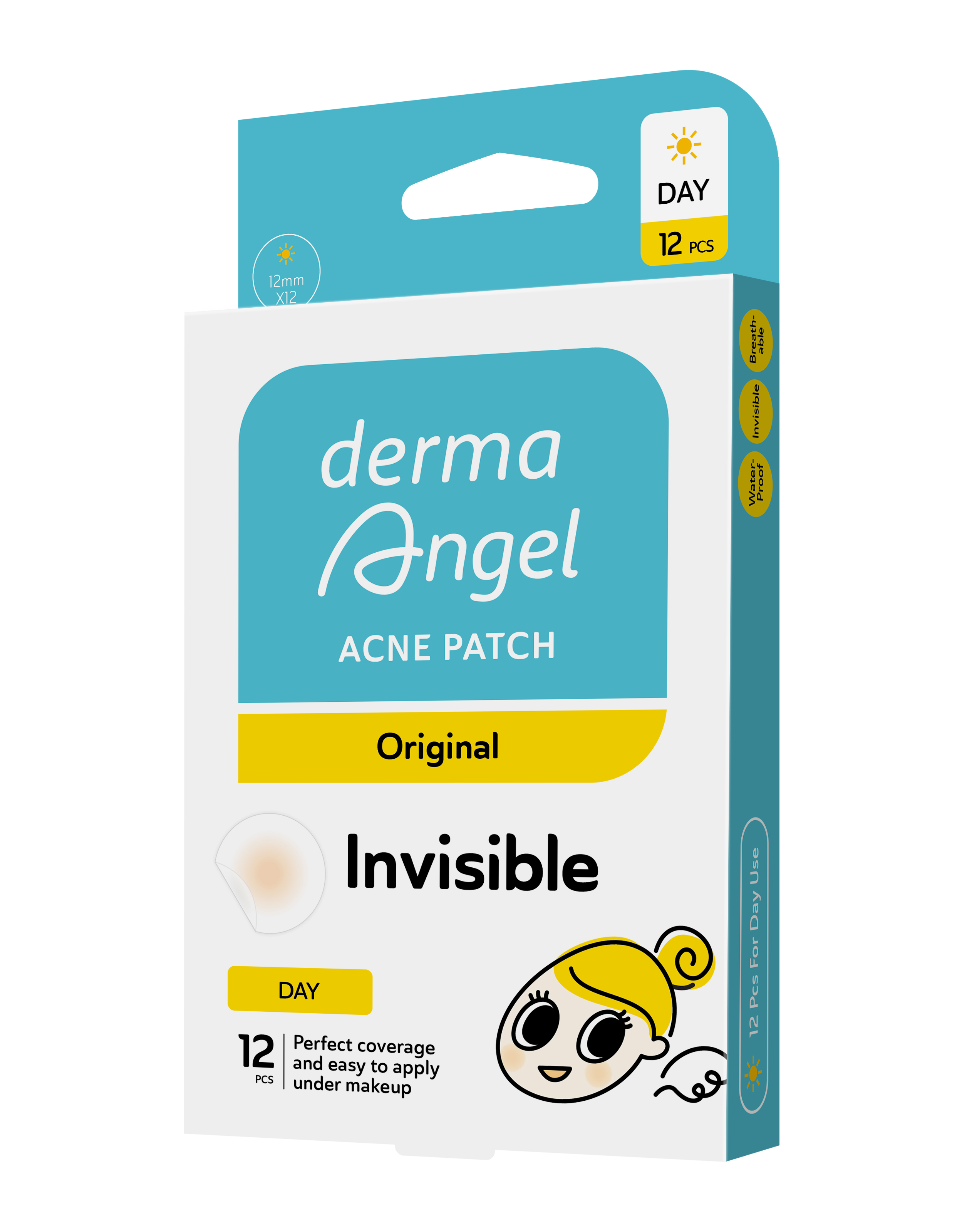 Miếng dán mụn ban ngày Derma Angel (12 miếng/hộp) với thiết kế siêu mỏng và tệp màu da giúp che các khuyết điểm do mụn và giữ lớp trang điểm không bị trôi. Lớp Hydrocolloid trong miếng dán hút mụn nhanh chóng và làm lành vết thương sau mụn hiệu quả, đồng thời bảo vệ da mụn khỏi bụi bẩn và các nguyên nhân gây viêm
