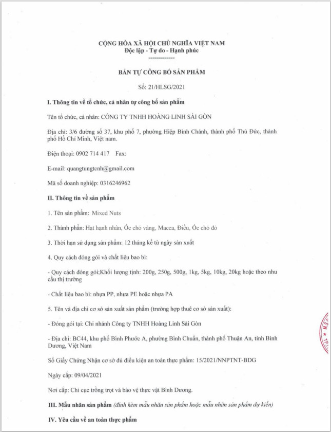 Thông tin hạt điều rang muối Bình Phước. - Thương hiệu: H Holinut Nuts & More  - Phân phối bởi công ty TNHH HOÀNG LINH SÀI GÒN - Xuất xứ: Bình Phước (Việt Nam)