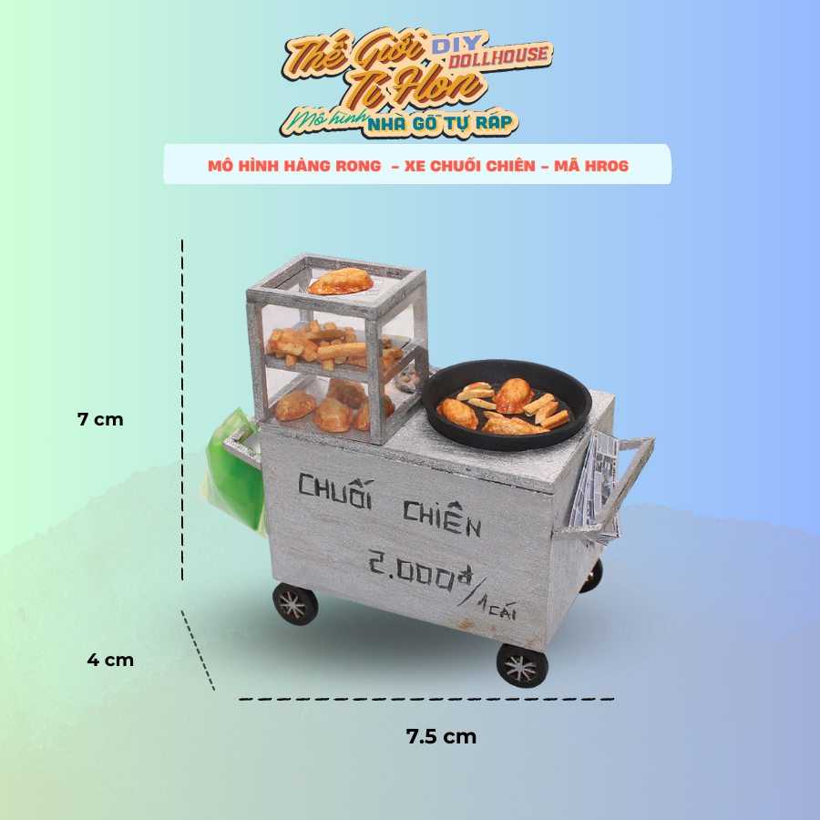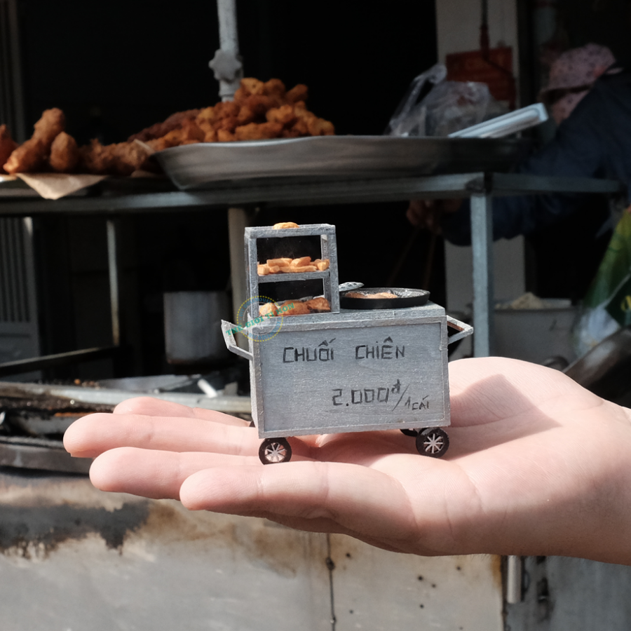- SẢN PHẨM KHÔNG ÁP DỤNG ĐỔI TÊN BẢNG HIỆU GIÁ SẢN PHẨM CHƯA BAO GỒM THUẾ VAT, KHÁCH CẦN XUẤT VAT XIN VUI LÒNG LIÊN HỆ THẾ GIỚI TÍ HON QUA CHATBOX Giới thiệu Mô Hình Sài Gòn Xưa Và Nay Thu Nhỏ - Xe Chuối Chiên - HR06 ** ĐƠN HÀNG XE HÀNG RONG KHÔNG ÁP DỤNG FREESHIP Ở Sài Gòn, không khó để bạn tìm một xe bán bánh chuối chiên tại các chợ, cổng trường, ngã tư... Vỏ bánh vàng vàng, giòn rụm, kết hợp với sự ngọt lịm của nhân chuối bên trong. Chỉ đơn giản như vậy nhưng những chiếc xe bán chuối chiên, khoai lang chiên nho nhỏ luôn nườm nượp kẻ đến người đi, ăn hết ngày này qua ngày khác vẫn không hết thòm thèm... Mô hình Xe Hàng Rong Sài Gòn Xe Chuối Chiên Thu Nhỏ - HR01 Tìm Hiểu Mô Hình Tí Hon Thông số mô hình