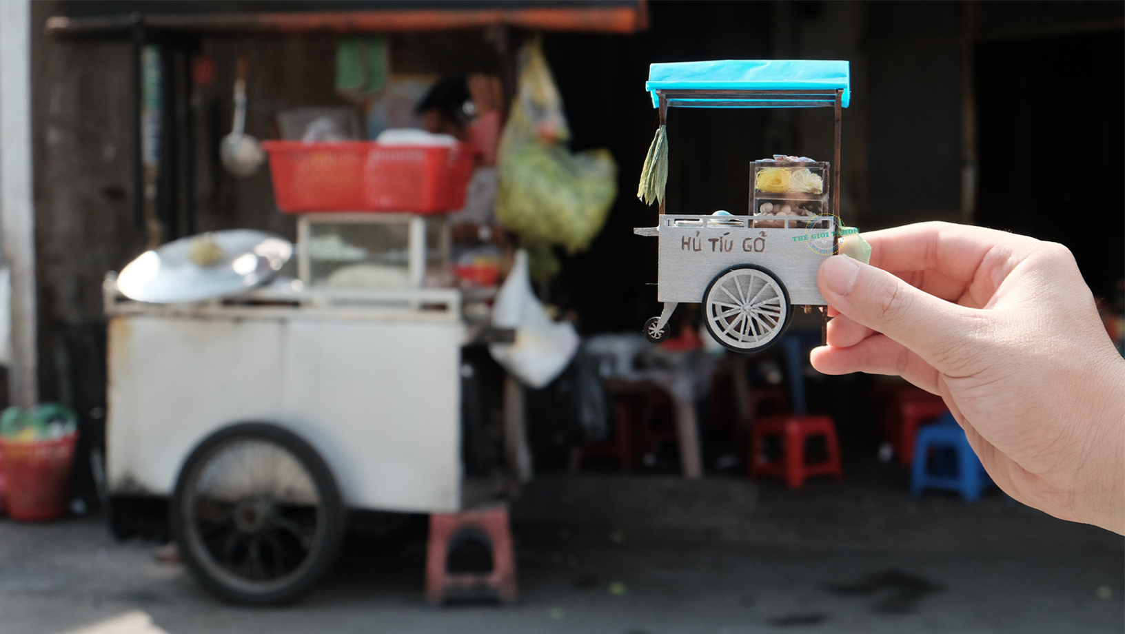 - SẢN PHẨM KHÔNG ÁP DỤNG ĐỔI TÊN BẢNG HIỆU GIÁ SẢN PHẨM CHƯA BAO GỒM THUẾ VAT, KHÁCH CẦN XUẤT VAT XIN VUI LÒNG LIÊN HỆ THẾ GIỚI TÍ HON QUA CHATBOX Mô Hình Tí Hon Xe Hàng Rong Sài Gòn - Xe Hủ Tíu Gõ - HR08 ** ĐƠN HÀNG XE HÀNG RONG KHÔNG ÁP DỤNG FREESHIP Thứ âm thanh cô độc nhất giữa Sài Gòn phồn hoa này có lẽ là tiếng gõ lóc cóc của những chiếc xe hủ tíu gõ trong đêm. Nhớ đến thứ âm thanh ấy, người ta dễ dàng hình dung ra những nẻo đường Sài Gòn về khuya, với một chiếc xe được dựng lên tạm bợ, bên trong đó là nồi nước lèo bốc khói trắng nghi ngút, ngăn để tô, muỗng, gia vị, ít đồ làm hủ tiếu... Thế rồi, hình ảnh chiếc xe đơn sơ với những tiếng gõ lóc cóc bắt đầu vang vọng trên những con đường, đi sâu vào trong từng góc hẻm... Mô hình Sài Gòn Xe Hủ Tíu Gõ Tí Hon - HR08 Tìm Hiểu Mô Hình Tí Hon Thông số mô hình Đánh giá độ khó Kích thước sản phẩm 7.5 x 7.0 x 11.0 CM (Dài x Rộng x Cao) Xuất xứ VIỆT NAM Cân nặng 0.2 Kg Nguyên vật liệu Gỗ, hoa cỏ khô, vải, giấy, kim loại, đèn Led, gốm sứ,nhựa,... Sản phẩm bao gồm Hộp Pin có công tắt, nguyên vật liệu lắp ráp, sách hướng dẫn. Phụ kiện làm mô hình (Mua riêng): Keo chuyên dụng + Mica Che Bụi + Bộ dụng cụ Kit...() Shop hỗ trợ lắp ráp luôn nếu bạn có nhu cầu (có phụ phí)