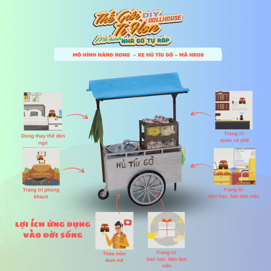 ✨MÔ HÌNH TỰ LẮP RÁP DIY SÀI GÒN TÍ HON - XE HỦ TÍU GÕ - HR08