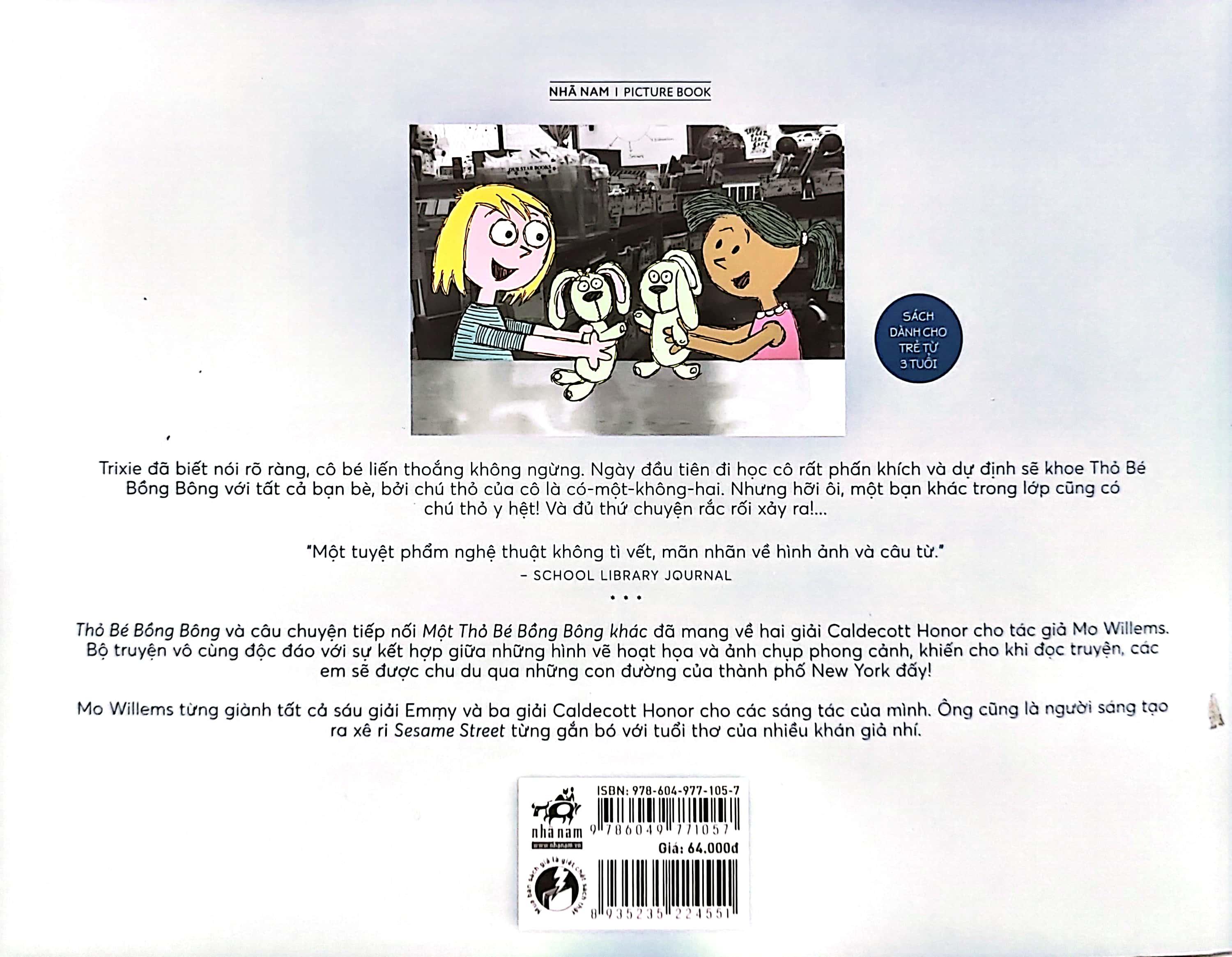 Thỏ Bé Bồng Bông và câu chuyện tiếp nối Một Thỏ Bé Bồng Bông khác đã mang về hai giải Caldecott Honor về cho tác giả Mo Willems. Bộ truyện vô cùng độc đáo với sự kết hợp giữa những hình vẽ hoạt họa và ảnh chụp phong cảnh, khiến cho khi đọc truyện, các em sẽ được chu du qua những con đường của thành phố New York. Chính vì vậy, mà bộ sách này đã lọt vào danh sách sách bán chạy nhất của tờ New York Times danh giá.