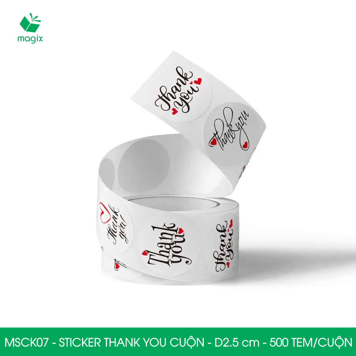 ✨MSCK07 - D2.5 cm - 1 Cuộn 500 sticker thank you tròn, nhãn dán thank you, tem dán cảm ơn