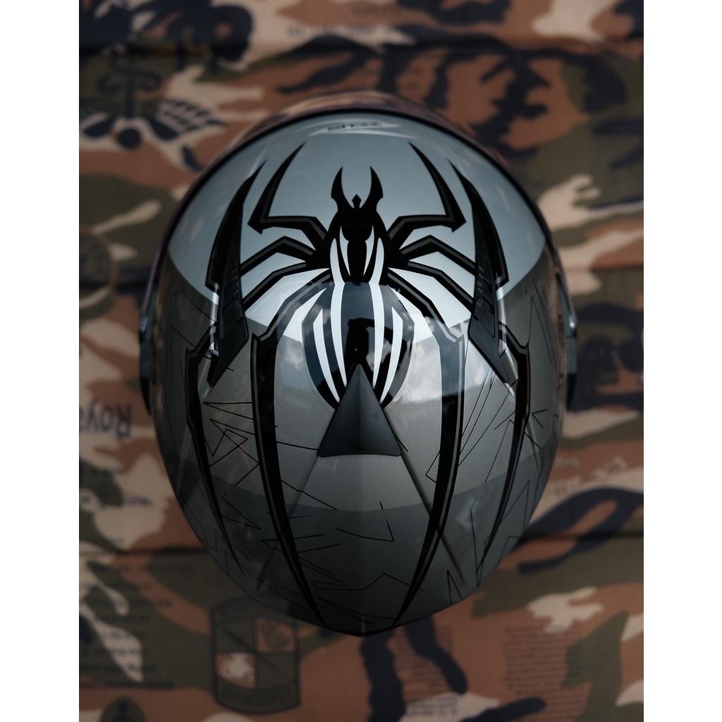 Mũ bảo hiểm được trang bị lớp kính giấu bên trong, có thể kéo ra giấu vào tùy theo nhu cầu sử dụng. Ngoài ra, nón còn đính kèm 3 khuy bấm phía trên mũ,