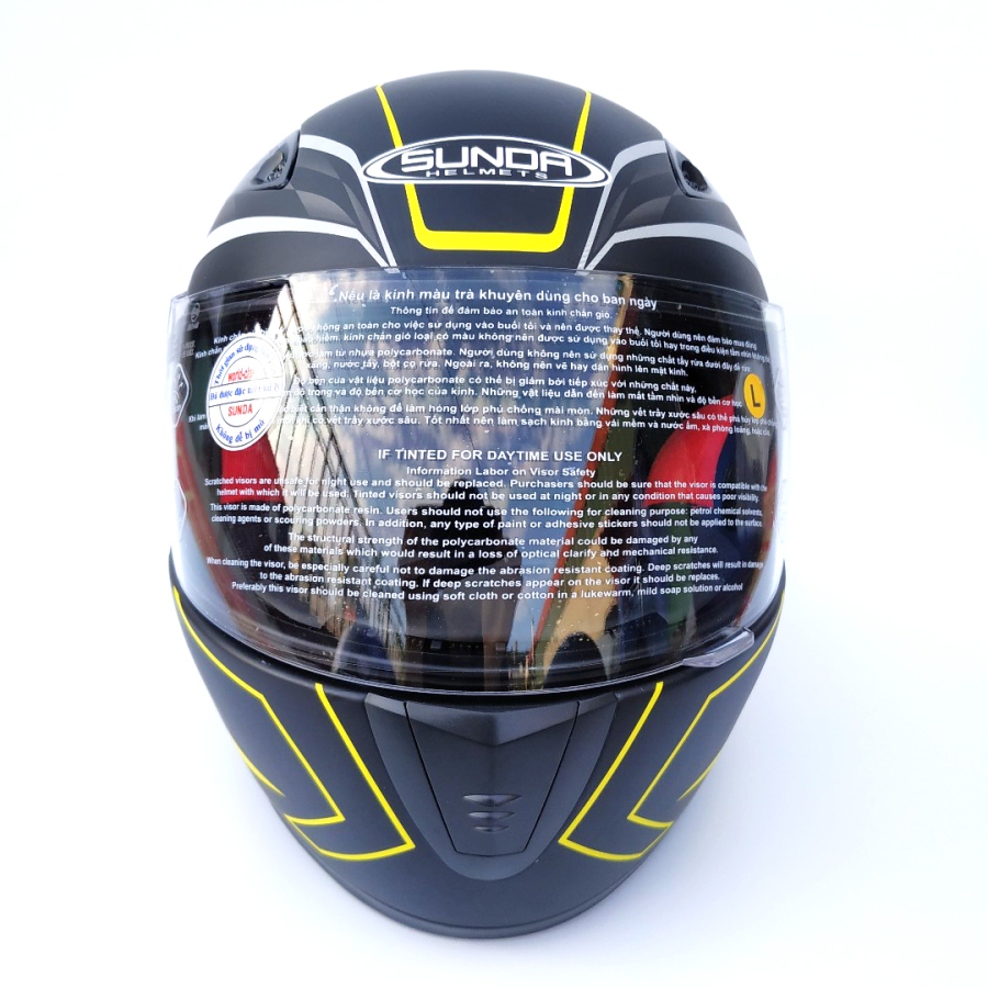 Mũ bảo hiểm fullface chính hãng Sunda 2000c đen nhám tem vàng là sản phẩm được cải tiến từ mẫu Andes/Sunda 2000A vốn được sản xuất để xuất khẩu phục vụ chủ yếu cho thị trường