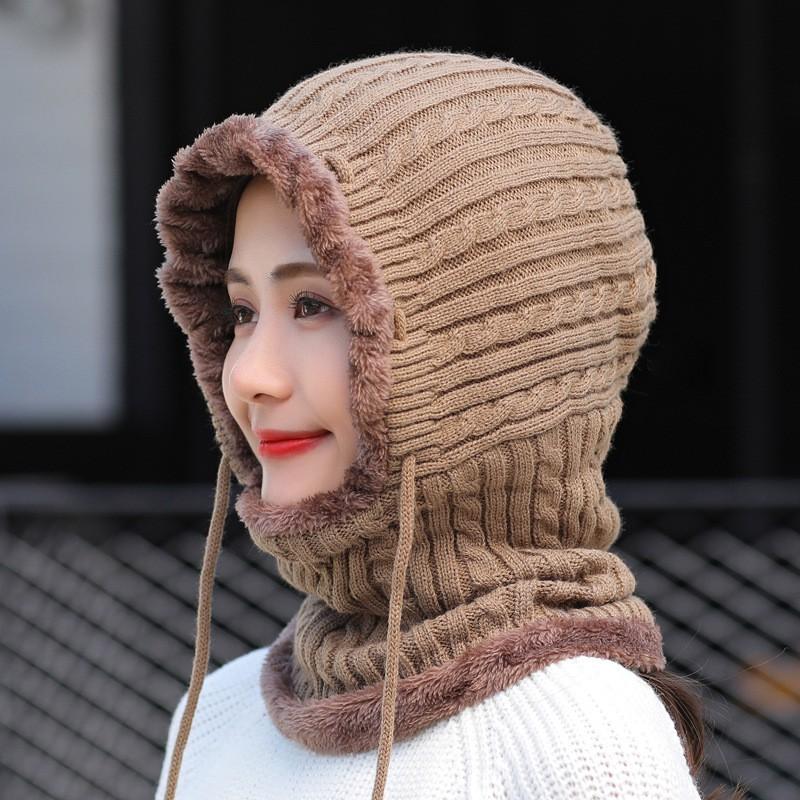✨Mũ len nữ trùm đầu liền khăn choàng cổ lót lông ấm áp thích hợp cả nam và nữ