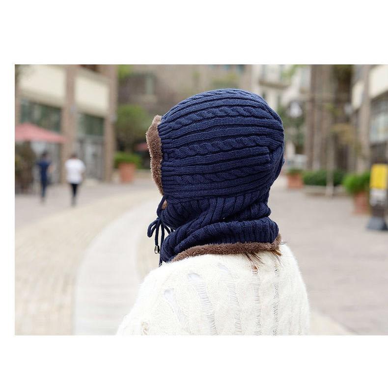 Mũ len trùm cổ lót nỉ ấm áp chóng gió lạnh mua đông phù hợp cả nàm và nữ mũ len lông cừu mềm mịn