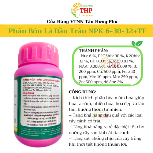 2 Phân Bón Lá Đầu Trâu NPK Có Chất Điều Hòa Sinh Trưởng 6-30-32+TE Hũ 100gam