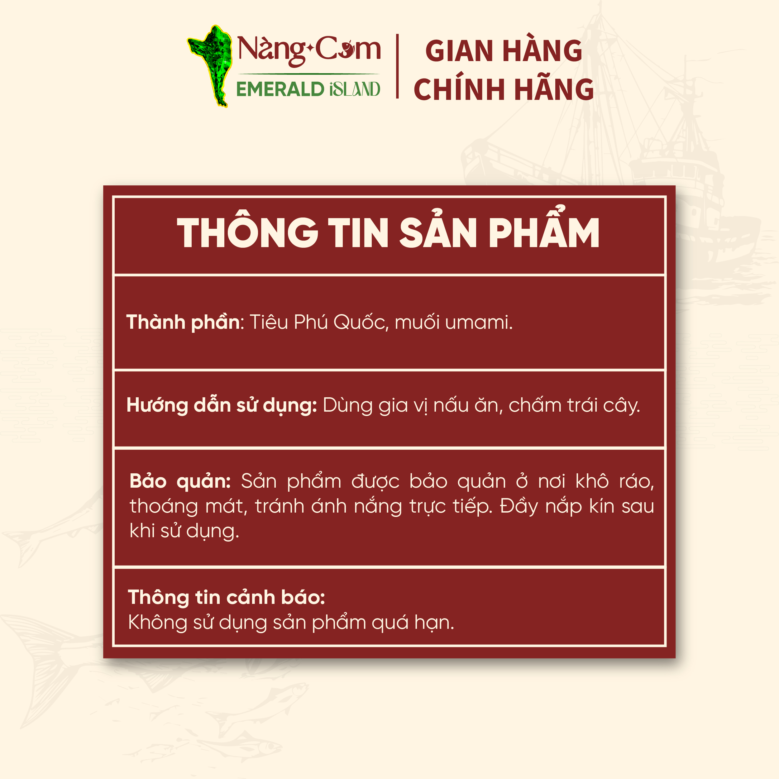 Muối Hồng Tiêu Umami Phú Vị + Loại hộp: Pet + Thương Hiệu: Nàng Cơm + Xuất xứ: Việt Nam + Hạn sử dụng: 24 tháng
