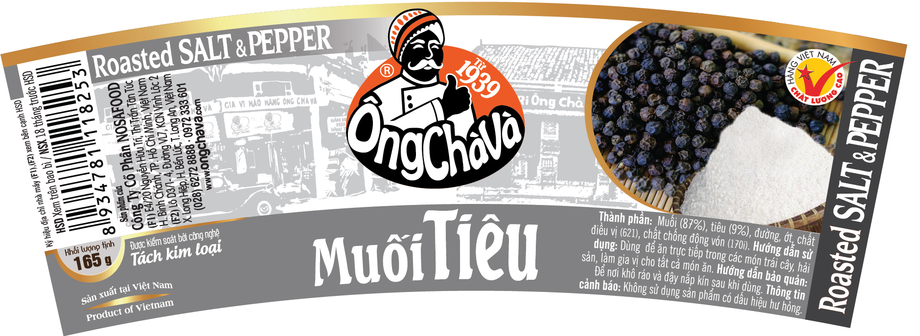 Muối Tiêu Ông Chà Và 100g được làm từ muối nấu sấy tinh khiết và những hạt tiêu thơm,...kết hợp với công nghệ chế biến riêng, Ông Chà Và đã tạo ra một sản phẩm muối tiêu đặc biệt có mùi thơm lâu tự nhiên, vị đậm đà, độc đáo với mong muốn mỗi bữa ăn gia đình luôn đậm đà hương vị thuần quê hương. 1. THÔNG TIN SẢN PHẨM - Thương hiệu: Ông Chà Và - Thành phần: Muối, tiêu,... - Trọng lượng: 100g - HSD: 12 tháng kể từ ngày sản xuất - Nhà sản xuất: Công ty Cổ phần Nosafood. - Địa chỉ sản xuất: Lô D3/1-4 Đường VL7, KCN Vĩnh Lộc 2, Xã Long Hiệp, Huyện Bến Lức, Tỉnh Long An. 2. MỘT SỐ MÓN ĂN GỢI Ý - Dùng làm gia vị cho tất cả món ăn. Chấm các món hoa quả, gà luộc, hoặc nhiều món ăn khác. - Ngoài ra có thể để ướp thịt cá, chế biến các món xào, kho tùy khẩu vị,.. 3. HƯỚNG DẪN BẢO QUẢN - Để nơi thoáng mát, tránh tiếp xúc ánh nắng mặt trời. - Sau khi mở bao bì, gói kín, bảo quản trong ngăn mát tủ lạnh. 4. CAM KẾT TỪ SHOP - Sản phẩm đạt tiêu chuẩn ISO22000, HACCP và đảm bảo An toàn vệ sinh thực phẩm. - Cam kết hàng rõ nguồn gốc, xuất xứ, đền tiền gấp đối nếu phát hiện hàng giả, hàng không đúng thương hiệu, quá hạn sử dụng khi khách hàng nhận đơn hàng. - Nếu giao sai/thiếu sản phẩm, Shop chịu trách nhiệm 100%. Trừ trường hợp sản phẩm bị móp méo về ngoại quan vì đây là do vấn đề khách quan từ nhiều yếu tố như vận chuyển, bảo quản hàng hóa từ kho. #ongchava #giavi #giavipho #giaviphobo #viengiavi #sotuopthitnuong #sate #satetom #satesodiep #satebaongu #botgiavi #suahat #suahathanquoc #tuongden #cariga #tuongot #botcari #nguvihuong