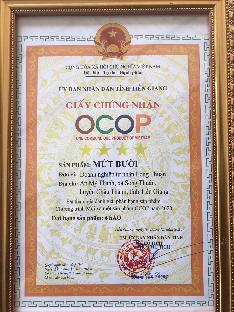 Mứt Bưởi – Thương Hiệu Long Thuận Ngoài các múi bưởi dùng để ăn thì vỏ bưởi còn có tác dụng chữa ho,làm các món ăn như mứt vỏ bưởi. Nhiều người còn thắc