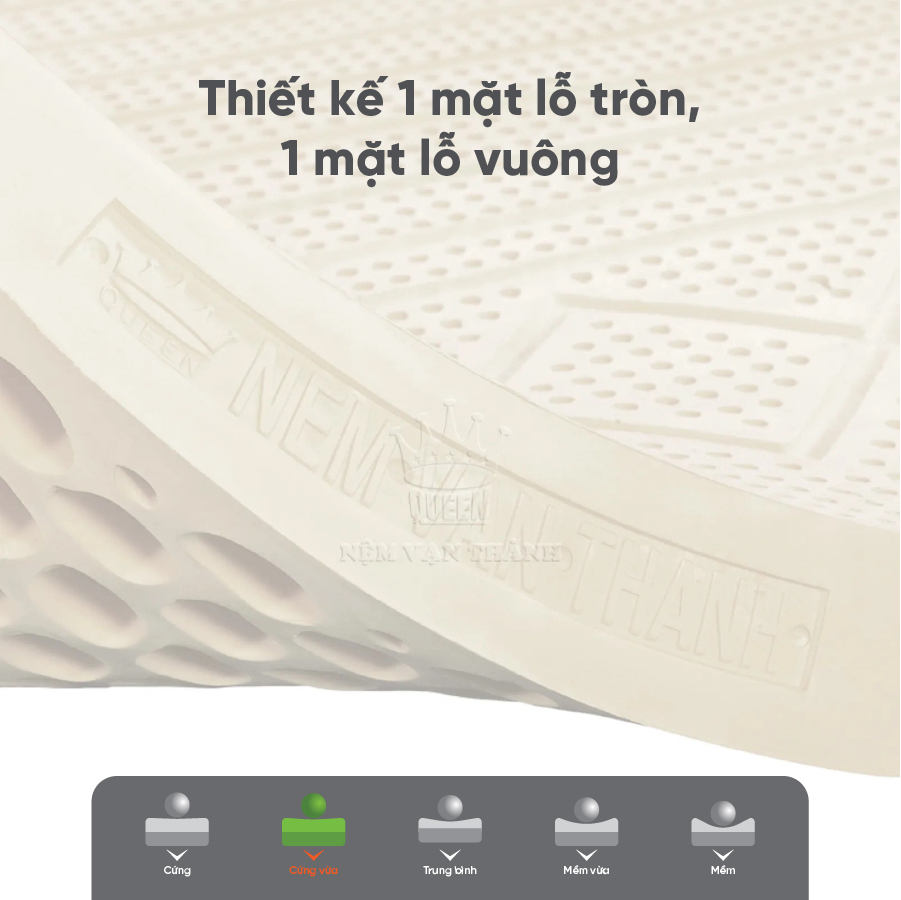 Thiết kế 2 mặt lỗ tròn rất đặc biệt có tính đàn hồi cao, có hệ thống rãnh thoát nhiệt được phân bỗ đều trên bề mặt nệm, vô cùng tiện lợi và bền bỉ cùng thời gian.