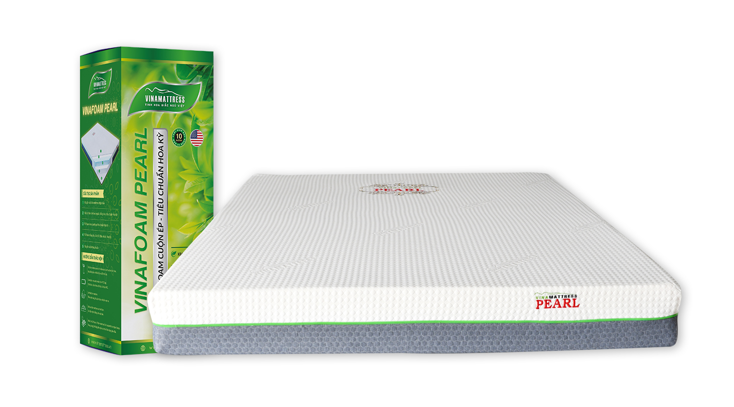Nệm foam cuộn ép Vinamattress Pearl tiêu chuẩn Hoa Kỳ Câu tạo: - Nệm được ép chân không & ép cuộn gọn gàng trong hộp & thiết kế tinh giản cùng công năng tối ưu.