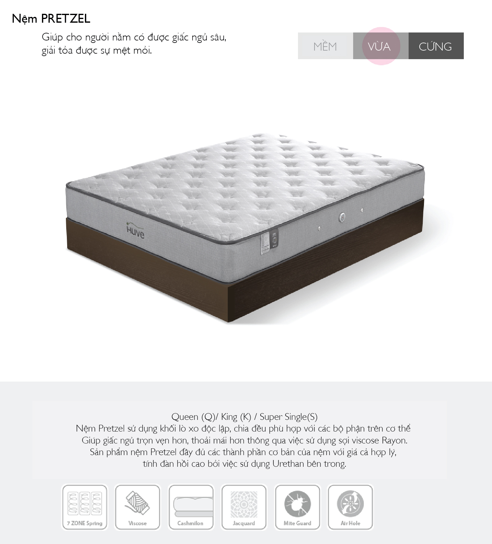 Mua tại TiktokNệm HUVE - PRETZEL 1.6m nhập khẩu Hàn Quốc THÔNG TIN SẢN PHẨM