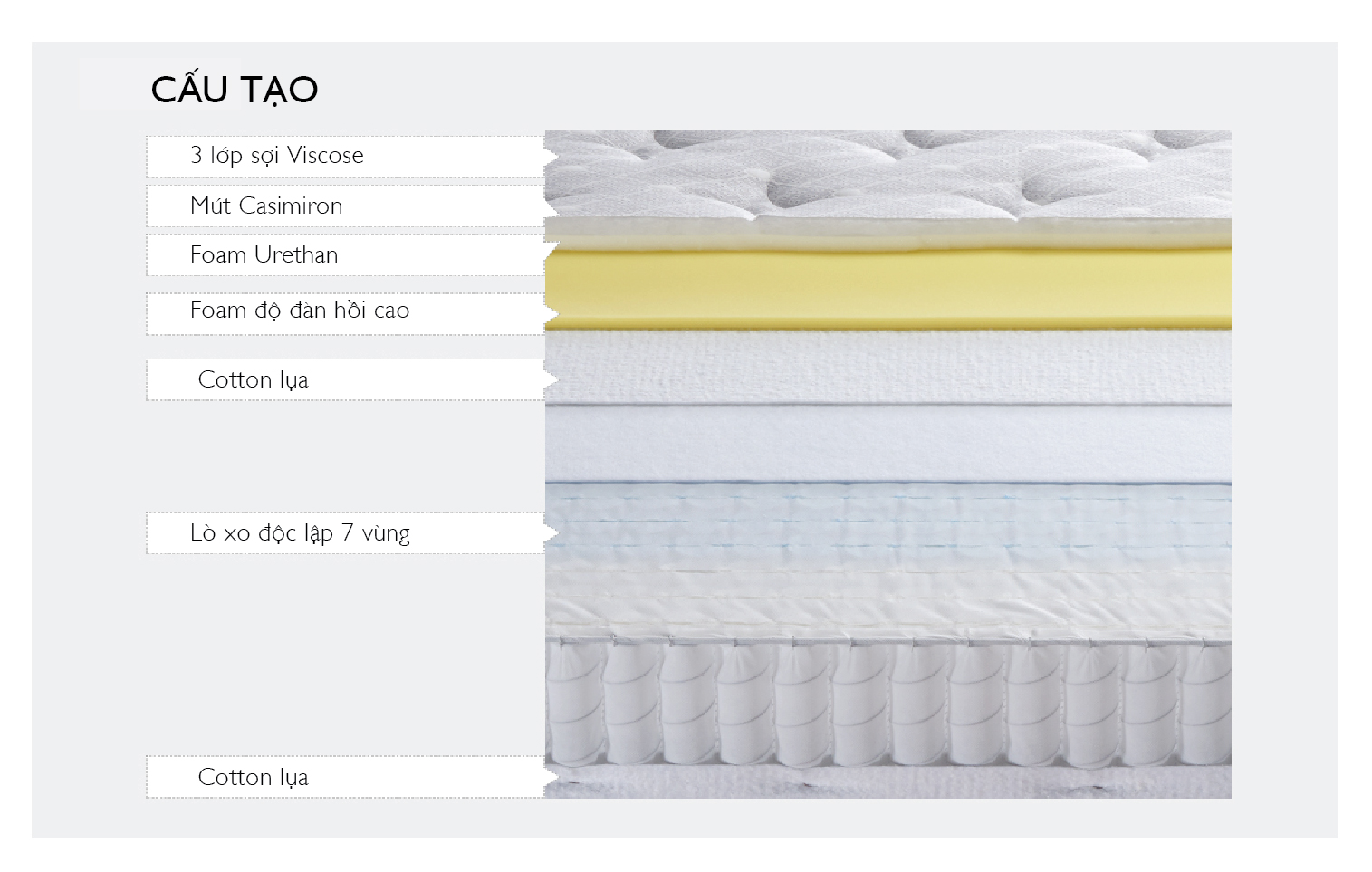 - Lò xo độc lập 7 vùng Multiflex