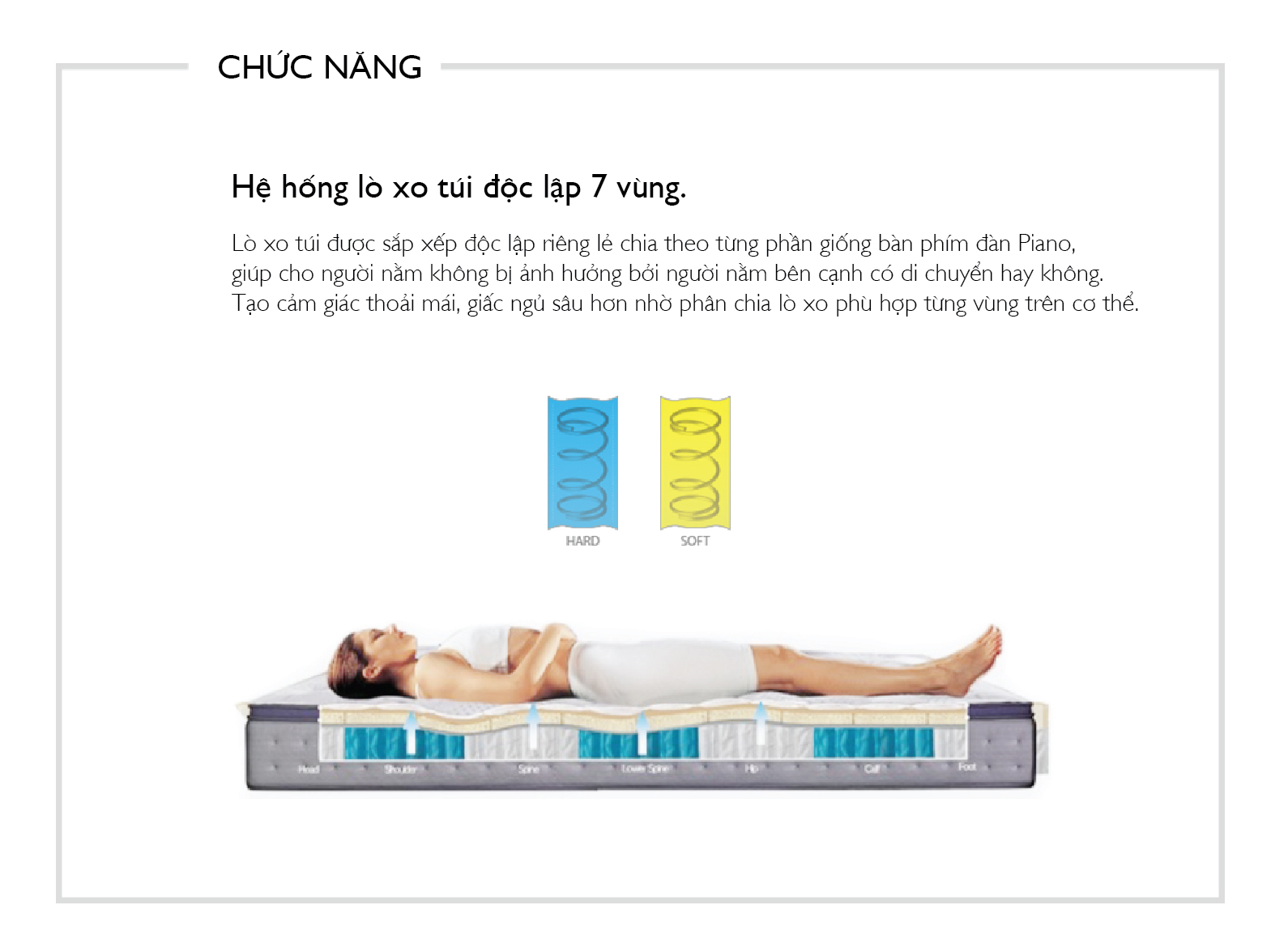 Nệm HUVE - SWING 1.8m nhập khẩu Hàn Quốc THÔNG TIN SẢN PHẨM - Thương hiệu: JANG IN - Xuất xứ: Hàn Quốc - Bộ sưu tập: SWING - Kích cỡ: 1800 x 2000 x