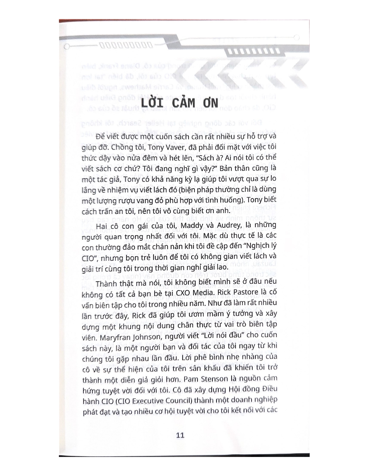 - Giới thiệu Nghịch Lý CIO - Hóa Giải Các Mâu Thuẫn Của Lãnh Đạo IT Trong Nghịch lý CIO, Heller đã nắm bắt được thực trạng các mâu thuẫn chính đang cản trở vai trò của CIO ngày nay, bao gồm cả việc được thuê để làm chiến lược nhưng lại phải dành phần lớn thời gian để tổ chức vận hành. Những đề xuất của cô về biện pháp để vượt qua những nghịch lý lớn chính là những lời khuyên ngắn gọn và hữu ích cho các CIO để trở nên thành công hơn trong vai trò này.”