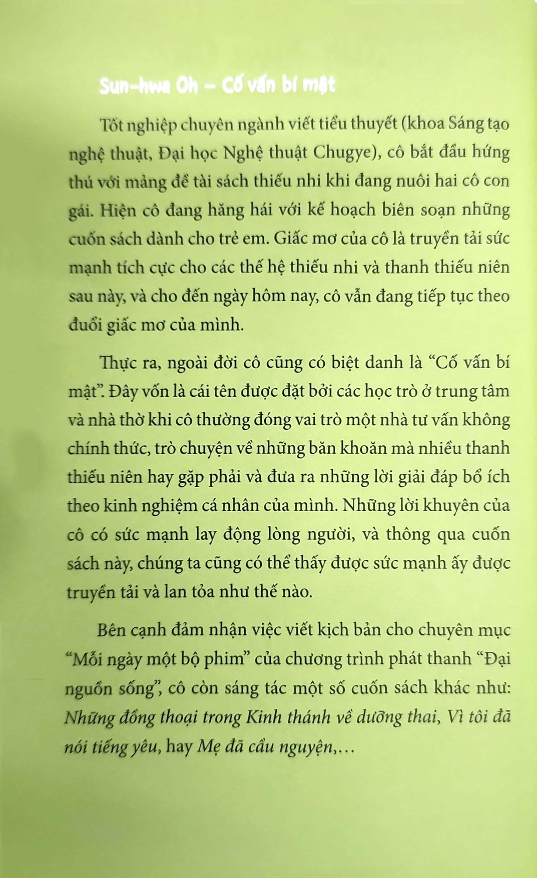Tên của tớ là Thỏ Mộng Mơ Bố đặt tên cho tớ như vậy là để nhắc nhở tớ rằng đừng bao giờ quên đi giấc mơ của mình. Nhưng tớ nghĩ cái tên và cuộc đời mình chẳng liên quan gì đến nhau hết. Tớ chẳng thích làm gì và cũng chẳng biết mình giỏi thứ gì. Đến cả giấc mơ của mình, tớ cũng chẳng biết luôn. Lúc tớ kể nỗi băn khoăn ấy với Thỏ Nhiệt Huyết, bạn ấy đã nói thế này: “Cậu thử nói chuyện với bố xem. Mỗi khi có người đăng băn khoăn lên trang web ‘Cố vấn cho thanh thiếu niên’ của bố cậu, ông ấy đều trả lời hết sức tận tình mà. Sống chung nhà với một người như vậy mà sao cậu lại không tận dụng cơ hội chứ?”. Trích đoạn sách hay: Rốt cuộc giấc mơ của em là gì nhỉ? Mọi người thường nhắc đến “vision”, tức là “tương lai”, nhưng chỉ cần nhắc đến hai chữ “tương lai” là em cảm thấy buồn bực rồi. Không biết là “tương lai” của em trốn ở nơi nào cơ chứ? Hừm… Không có gì lạ khi em cảm thấy buồn bực. Rất nhiều người nói về giấc mơ hay tương lai, nhưng thực ra để xác định được tương lai của mình không phải là chuyện đơn giản. Chắc em sẽ cảm thấy được an ủi một chút khi biết rằng không chỉ riêng em mà nhiều người khác cũng vậy, đúng không? Uri Shulevitz có viết một câu truyện cổ tích tên là Báu vật. Nhân vật chính là ông lão Issac cực kỳ nghèo khó. Một ngày nọ, ông mơ thấy một kho báu vật được cất giấu ở một cung điện xa xôi. Ông lão Issac tin vào giấc mơ của mình, đã vượt núi lội sông và tìm đến được đến cung điện ấy. Ông kể lại giấc mơ của mình với người lính canh và nhờ anh ta tìm giúp báu vật. Thế nhưng, anh lính canh lại cười nhạo ông lão rằng: “Tôi cũng có một giấc mơ ông lão ạ. Tôi mơ thấy báu vật được cất giấu ở dưới bếp lò nhà ông lão Issac sống rất xa nơi này. Ông thử đến đó tìm xem sao.” Thế là, ông lão Issac lại tiếp tục vượt núi lội sông để trở về nhà. Khi về đến nhà, ông thực sự đã tìm thấy báu vật ở dưới bếp lò. Thỏ Mộng Mơ à, giấc mơ là một báu vật quý giá. Để tìm được thứ quý giá ấy, em sẽ tốn rất nhiều thời gian, công sức, và cũng có thể còn phải quay lại để kiếm tìm giống như ông lão Issac vậy. Đến cuối cùng, thứ quý giá có khi lại đang ở dưới bếp lò nhà em cũng nên. Em bảo nhà mình không có bếp lò hả? Ha ha ha ha. Nếu vậy, em hãy thử nhìn vào trái tim mình xem sao, bởi vì thứ em thực sự yêu thích, thứ em thực sự giỏi có thể đang nằm ở dưới bếp lò trong trái tim em đấy.