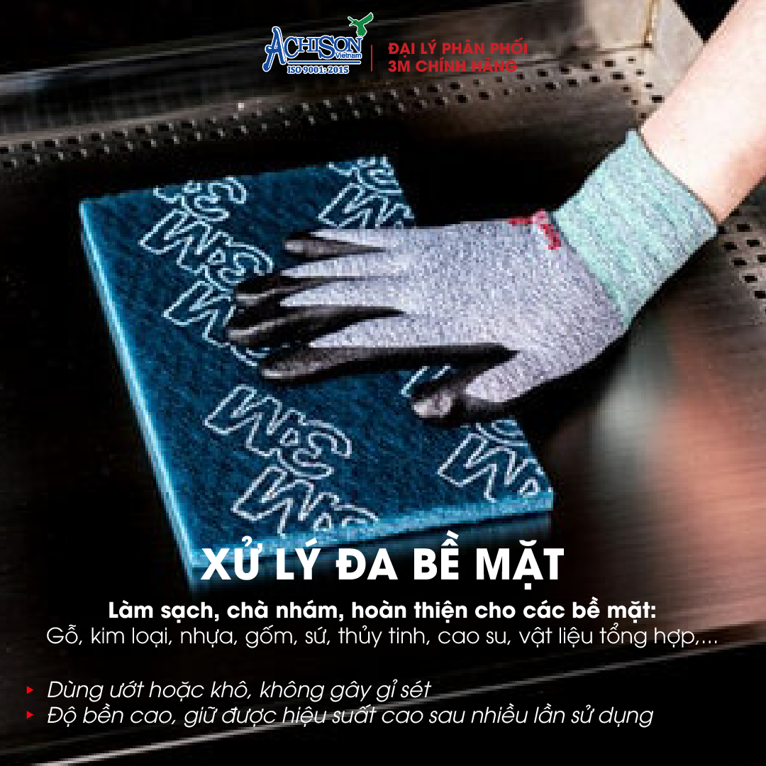 Bùi nhùi 3M Mighty Blue được sử dụng để làm sạch và mài tạo độ bám, sử dụng được trong môi trường ướt, khô và dung môi.