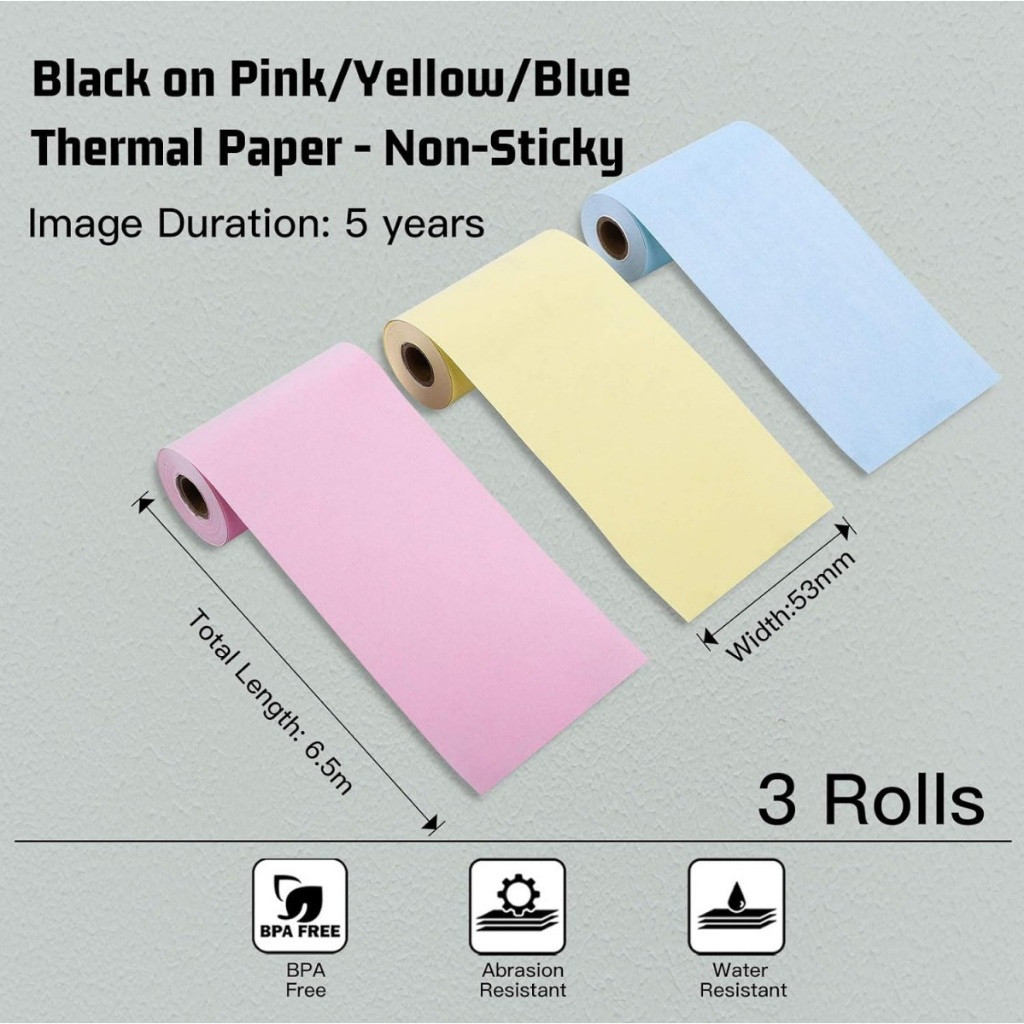 ✨Nhãn Dán Vàng/Hồng/Xanh KT-RMYPB, Độ Bền 5 Năm, 53mm X 6.5m - Sử dụng cho máy in nhãn T02 của Aimo - Hàng chính hãng