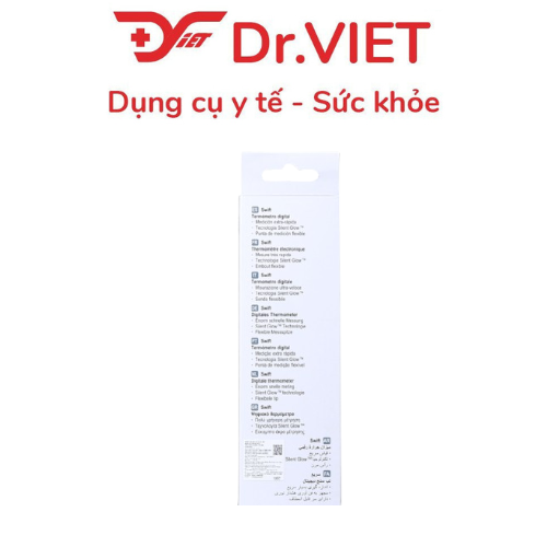 Tự động tắt nguồn sau một thời gian không sử dụng để tiết kiệm pin. Thông số kỹ thuật Thông số Giá trị Phạm vi đo 32.0 °C – 43.9 °C Độ chính xác ± 0.1 °C (trong khoảng 34–42 °C) Thời gian đo Khoảng 10 giây (đo hậu môn), 20–60 giây (miệng, nách) Pin 3V CR1632 hoặc CR1225 (tùy thị trường) Tuổi thọ pin Khoảng 3.000–3.200 lần đo Tính năng khác Đổi đơn vị °C/°F, báo sốt, cảnh báo pin yếu Ưu điểm và nhược điểm Ưu điểm: