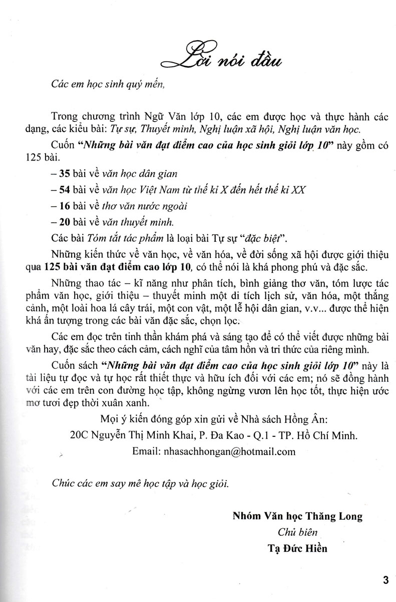 Cuốn Những Bài Văn Đạt Điểm Cao Của Học Sinh Giỏi 10 (Dùng Chung Cho Các Bộ SGK Hiện Hành) này gồm có 125 bài.