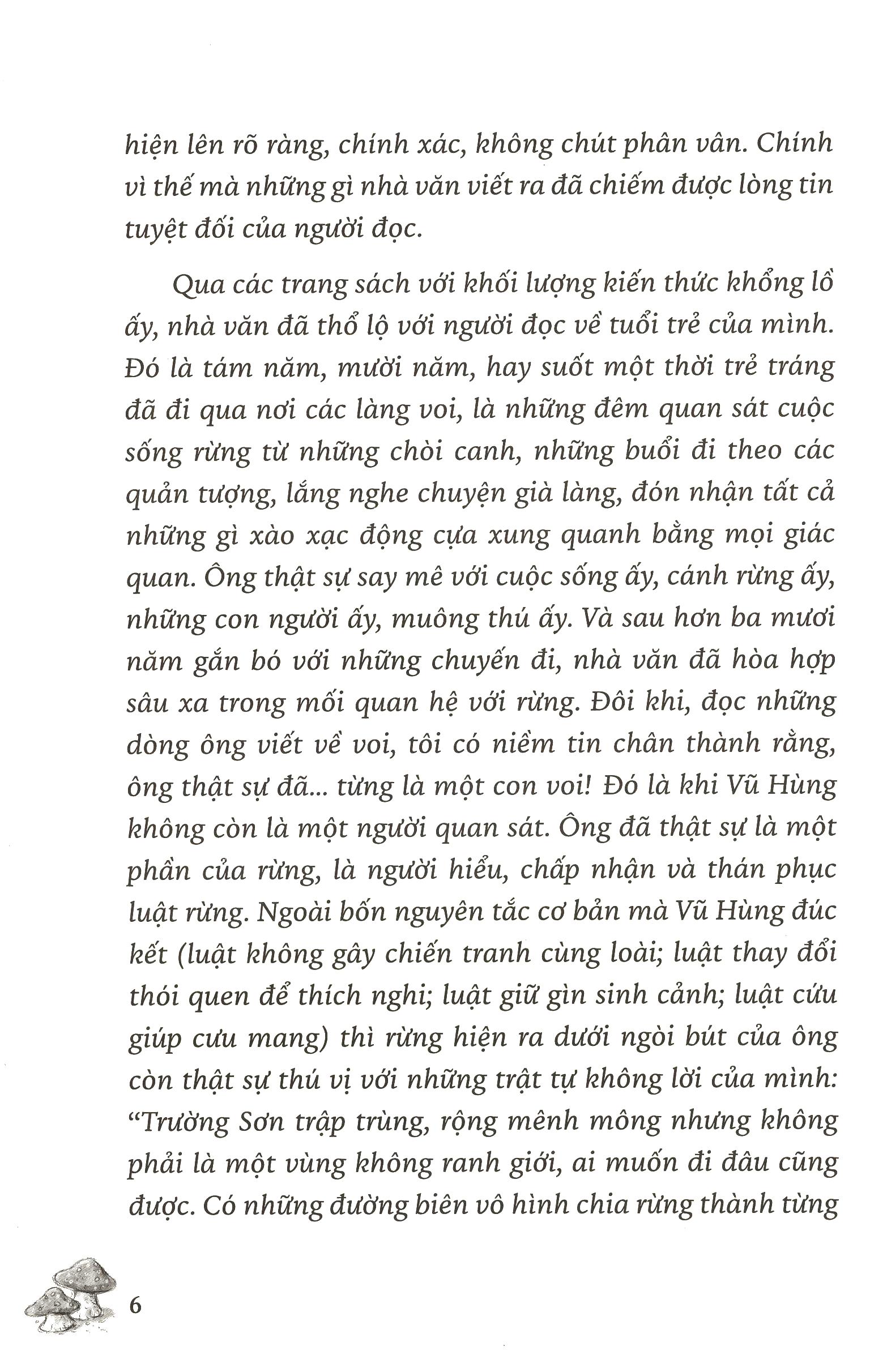 “Tình nhân ái trong thiên nhiên được thể hiện ở việc không có hiện tượng chiến tranh cùng loài: các bầy voi không đánh nhau, các con hổ chỉ đánh nhau khi tranh giành một con cá Vậy mà bây giờ con người lại dễ xô xát, nổi cáu với nhau bởi những chuyện rất nhỏ. Tôi hi vọng độc giả đọc những tác phẩm của tôi sẽ thêm yêu đất nước Việt Nam, yêu thiên nhiên, yêu con người, yêu muông thú. Đồng thời, văn học có thể khiến con người thân thiện với nhau hơn, và con người thân thiện với động vật.” - Nhà văn VŨ HÙNG -