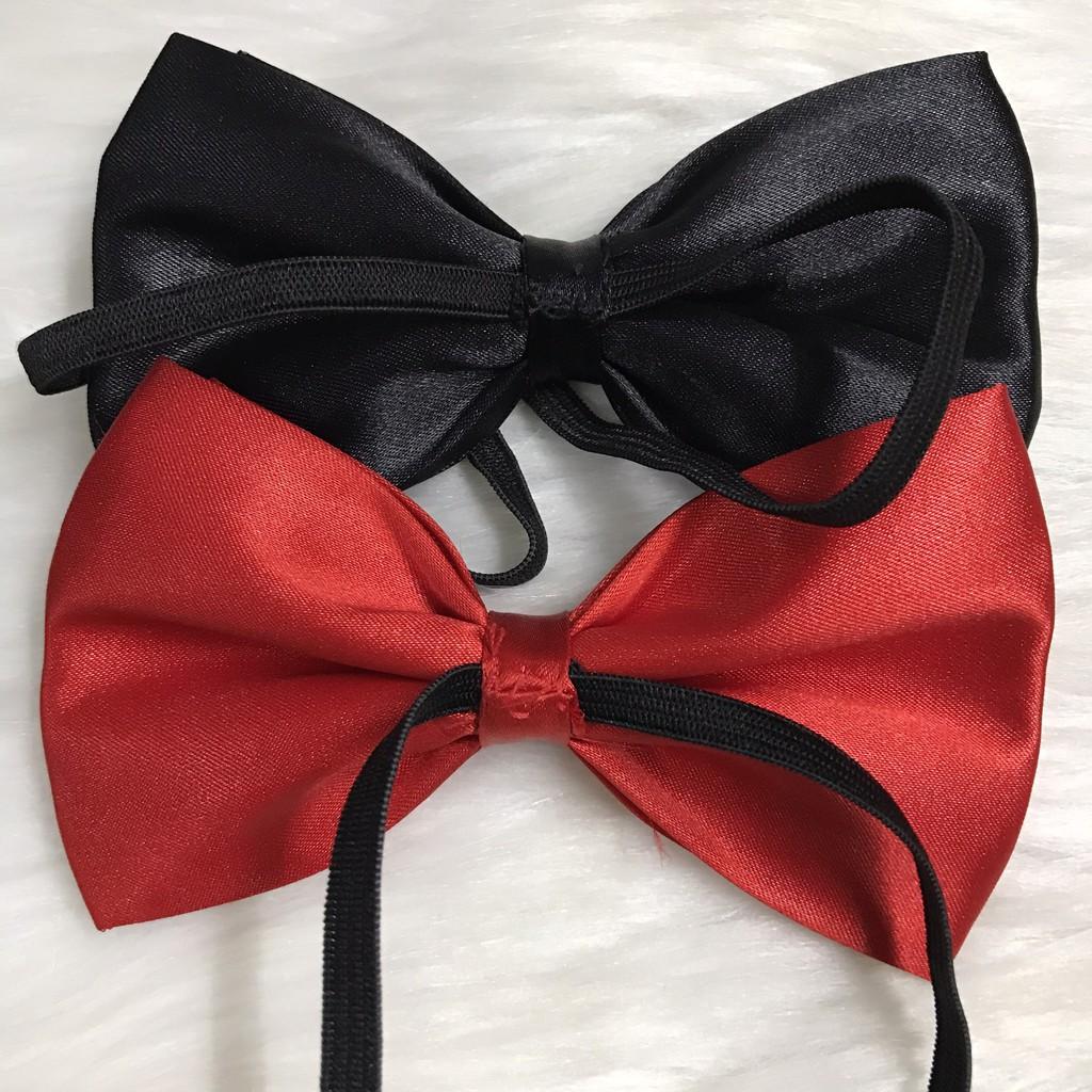 Thông tin sản phẩm NƠ ĐEO CỔ 2 LỚP MÀU ĐEN Chất liệu gồm 1. Vải Phi Bóng 2. Miếng lót bên trong là vải không dệt, from cứng 3. Dây đeo bằng thun co