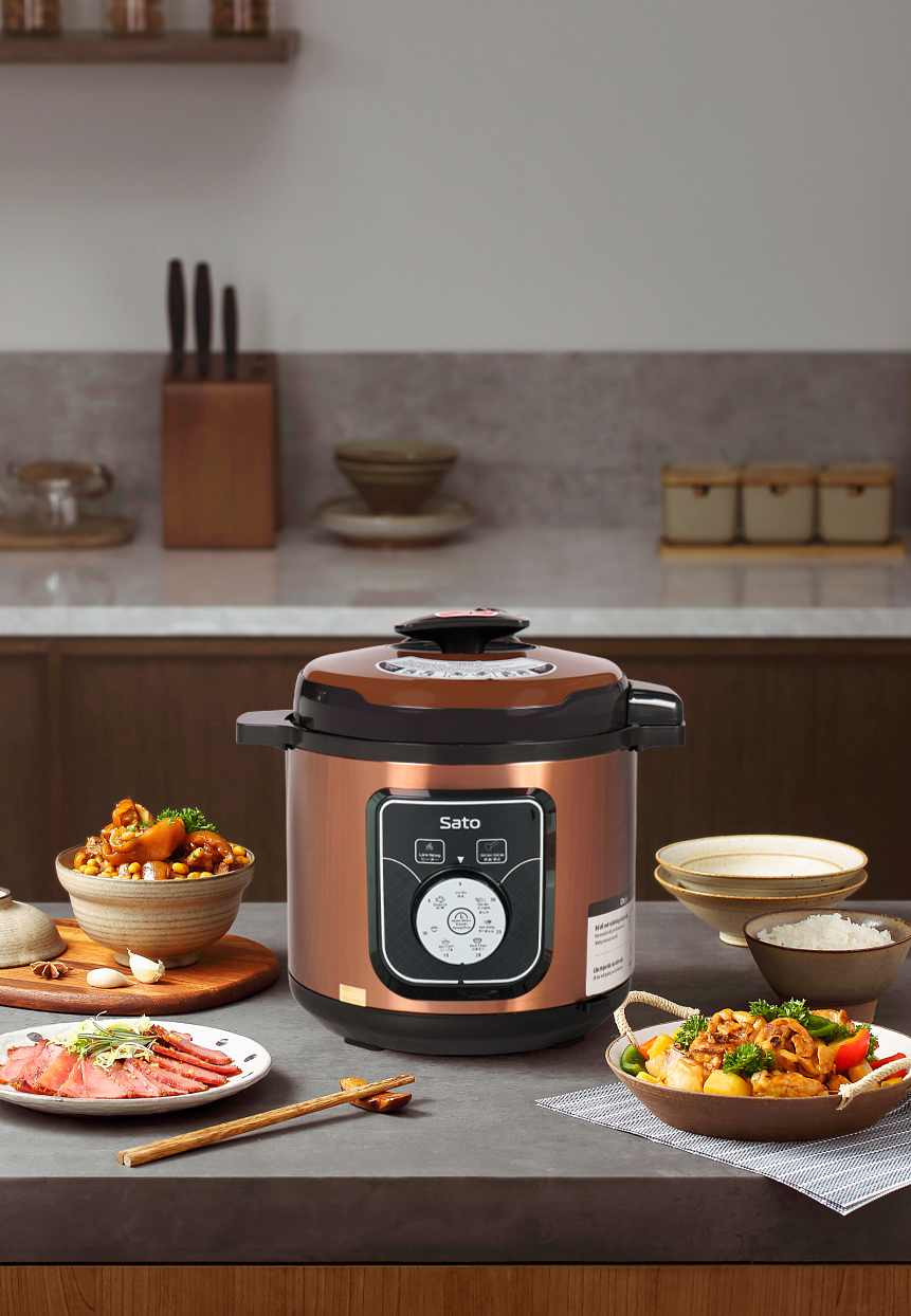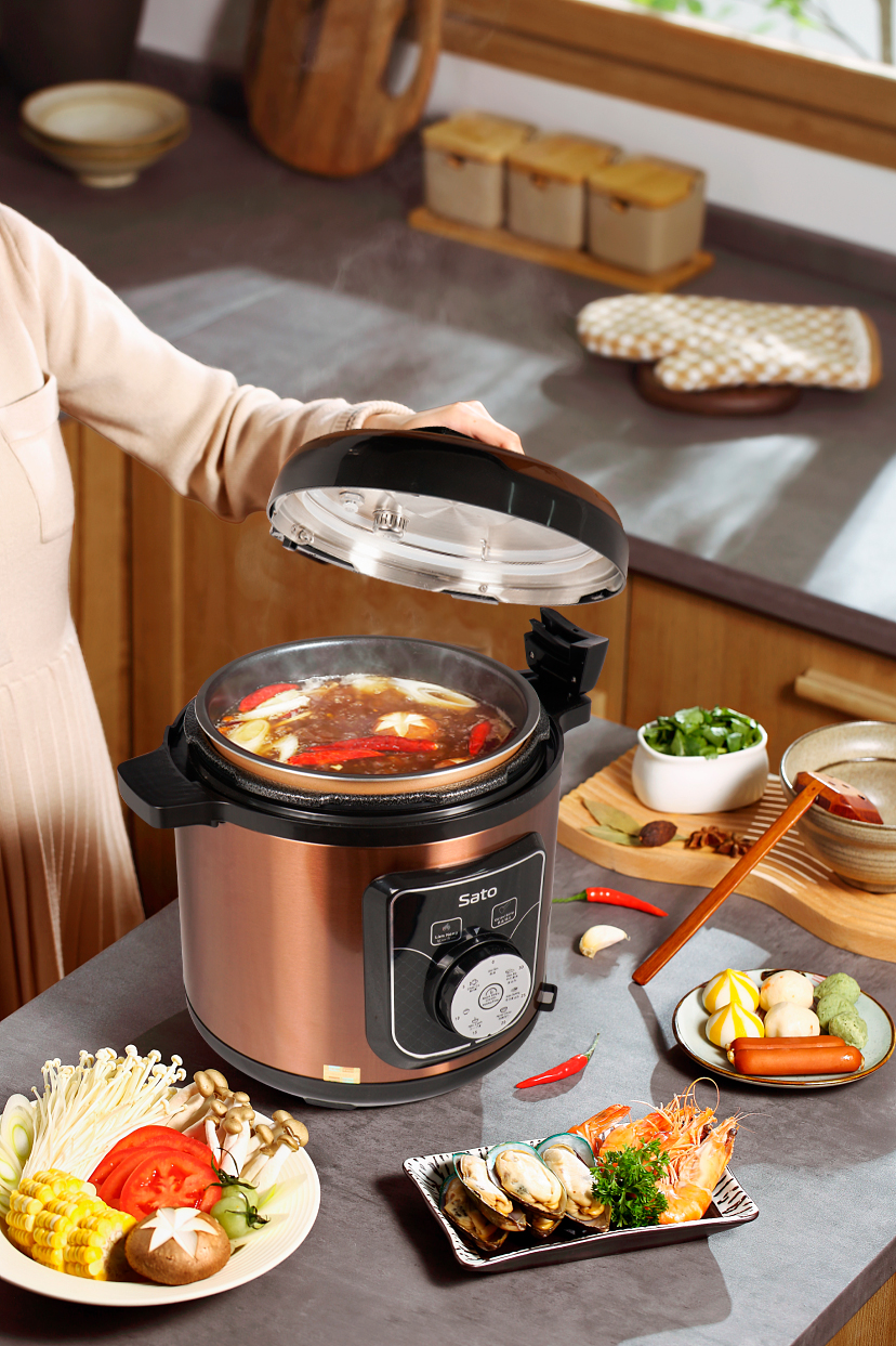 Sản phẩm kết hợp giữa nồi áp suất, bếp điện và nồi om. Điểm đặc biệt của nồi là hệ thống lập trình kiểm soát nhiệt độ và áp suất. Nồi được thiết kế hiện
