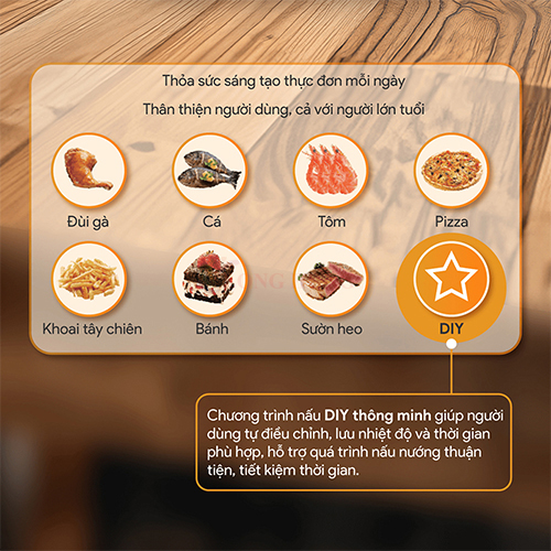 ĐẶC ĐIỂM NỔI BẬT - Nồi chiên ĐẦU TIÊN & DUY NHẤT 100% Made in Việt Nam - Bảng điều khiển cảm ứng hiển thị đèn LED gồm 8 chế độ cài đặt sẵn -