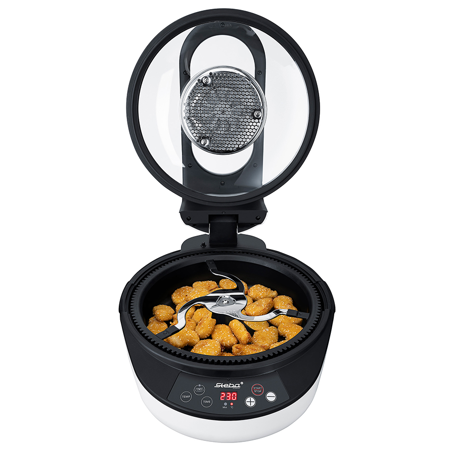 Đặc biệt, rổ chiên của nồi Steba có dạng lưới giúp dầu mỡ thừa chảy xuống khay hứng bên dưới, món ăn sẽ chín thơm ngon và không ứ dầu. Khay và rổ chiên thường được phủ chống dính, có thể tháo lắp dễ dàng, thuận tiện để lấy thức ăn và chùi rửa sau khi dùng. Sản phẩm sử dụng được cho tất cả các loại thực phẩm. Đối với những món bản thân đã có dầu mỡ như thịt, thịt gà, cá basa, món có phô mai… thì không cần dùng thêm dầu.