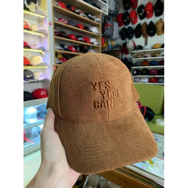 Nón kết vải nhung Yes You Can được may từ chất liệu vải nhung mềm mượt, tạo cảm giác thoải mái dễ chịu khi sử dụng. Các đường may chắc chắn tạo sự bền chắc