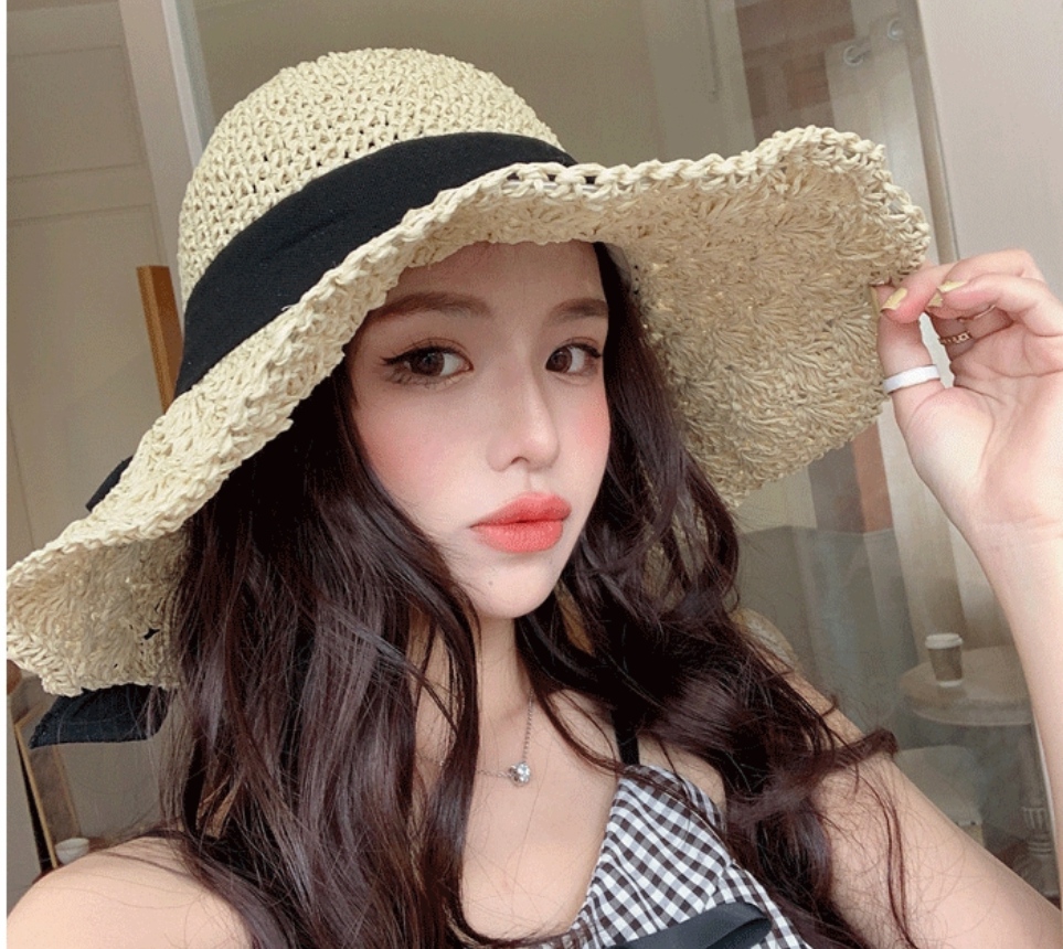 Nón mũ rộng vành đi biển chống nắng cho nữ phiên bản Hàn Quốc mới đi du lịch ngoài trời giải trí có thể gập lại chống tia cực tím Hàng nhập chất liệu vải