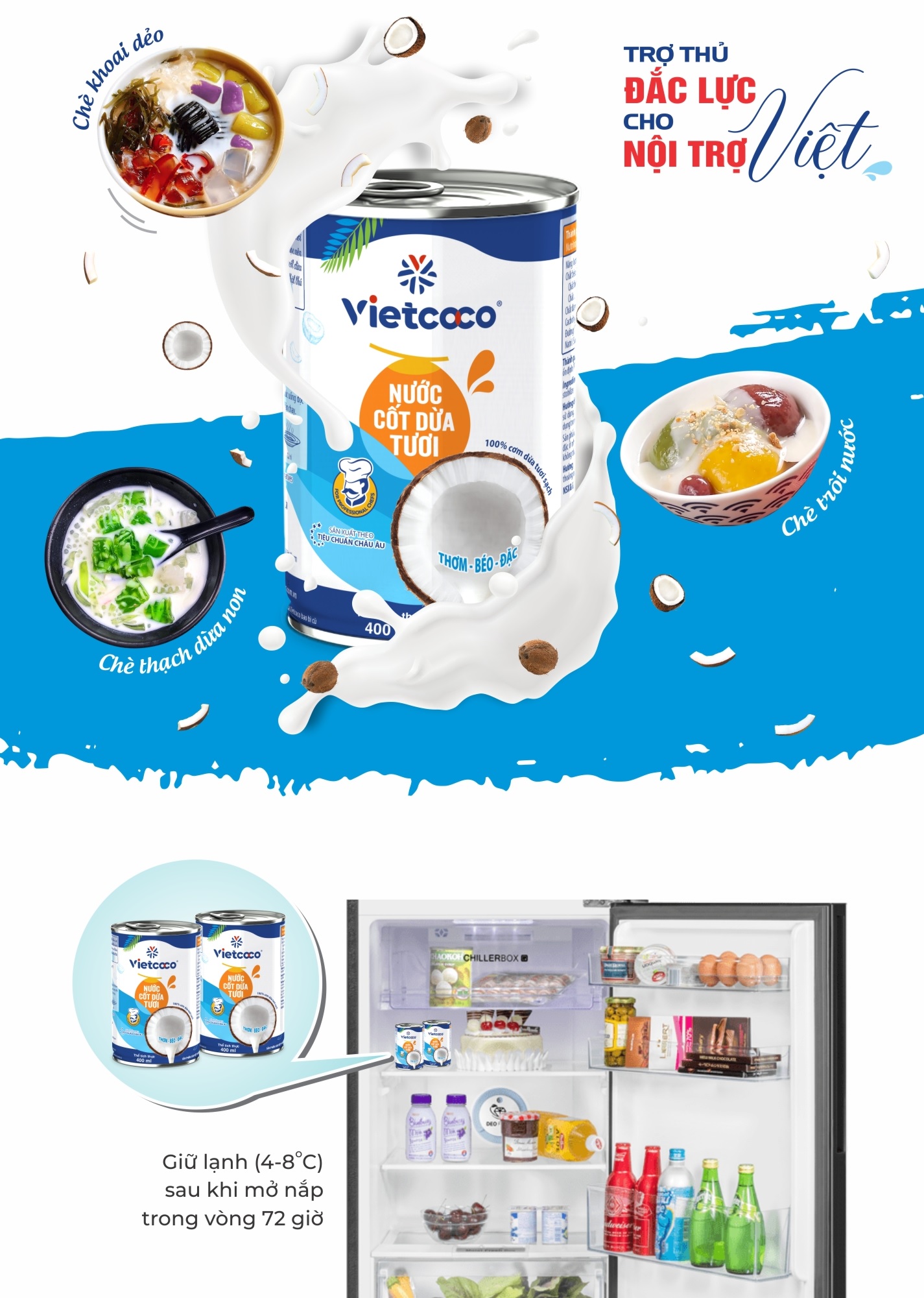 Sản phẩm: Nước cốt dừa Vietcoco - dùng cho món ngọt Thương hiệu: Vietcoco Dung tích: 160ml/ lon Giữ lạnh (4-8 độ C) và sử dụng trong vòng 72h sau khi mở nắp Phù hợp với người ăn chay và ăn kiêng Nước cốt dừa Vietcoco là trợ thủ đắc lực giúp bạn có bữa ăn ngon, đầy đủ dinh dưỡng mà vẫn đảm bảo chuẩn vị tự nhiên! Được chắt lọc từ cơm dừa (cùi dừa) hảo hạng của Bến Tre, được phối trộn cùng với công thức vô cùng đặc biệt phù hợp để chế biến các món ăn như: các món chè (chè thái, chè khúc bạch, chè bánh lọt, sương sáo,...), làm bánh,... Nước cốt dừa tươi Vietcoco là sự kết hợp giữa công thức truyền thống và ứng dụng công nghệ sản xuất hiện đại, sản phẩm của quá trình ép cơm dừa tươi chắt lọc thành từng dòng nước cốt dừa tươi đậm đặc và sánh mịn. Ngày nay nước cốt dừa tươi đã trở thành một thành phần thiết yếu trong các công thức nấu ăn vùng nhiệt đới và Châu Á, và như một gia vị đặc biệt của các chuyên gia đầu bếp hàng đầu thế giới. Đối với người tiêu dùng có ý thức về sức khỏe và chú trọng lối sống lành mạnh thì nước cốt dừa tươi Vietcoco là sự lựa chọn hoàn hảo!