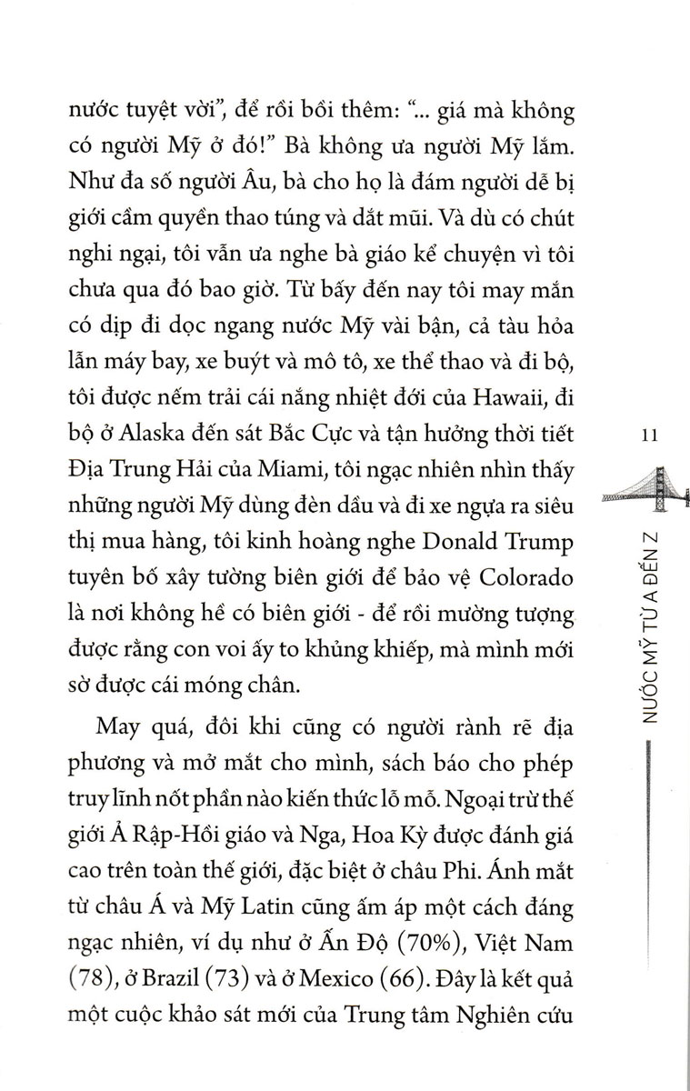 Nằm trong seri sách khám phá các đất nước nổi tiếng trên thế giới, cuốn sách Nước Mỹ từ Z đến A được viết bởi một người đã từng nhiều năm am hiểu về nước Mỹ, văn hóa Mỹ. Là một đất nước với đa chủng tộc, đa văn hóa và có nhiều điểm thú vị, cuốn sách chắc chắn sẽ giúp người đọc hiểu được một phần nào đó về đất nước, con người Mỹ. Đó là một đất nước của “những giấc mơ” về một miền đất hứa với sự phong phú đa dạng về văn hóa, tự do và sáng tạo hay sự phát triển của khoa học, công nghệ khiến cả thế giới phải ngước nhìn mà còn là một đất nước đa tôn giáo, đa màu da với những sự phức tạp của chủng tộc, của bạo lực hay phân biệt chủng tộc… Những vấn đề của Mỹ sẽ được nhìn bởi một người Việt nhiều năm sống ở Mỹ và giỏi quan sát cũng như am hiểu về văn hóa, giáo dục, chính trị, lịch sử, vừa là người ở ngoài nhìn vào trong nước Mỹ vừa là từ nước Mỹ nhìn ra thế giới để thấy được những điểm khác biệt. Mỗi một vấn đề được đề cập sẽ cho chúng ta những cái nhìn nhiều chiều và phong phú về một đất nước được xem là cường quốc số 1 thế giới. Đó không chỉ là những bề nổi mà người ta vẫn nhìn thấy ở Mỹ mà còn là những góc khuất, những điều tưởng là to lớn vĩ đại nhưng lại rất đơn giản để thấy có một nước Mỹ vừa quen vừa lạ. Đó là “những chuyện lặt vặt thường nhật mà thú vị từ tầm nhìn một người lang bạt xứ lạ và nay rảnh rỗi thuật lại các quan sát và cảm nghĩ của mình. Nó không phải là sách quảng cáo du lịch, cũng chẳng có ý định mổ xẻ như một nhà dân tộc học hay xã hội học, mà tọc mạch với cặp mắt trong trẻo của một cậu bé ra đi từ đất Ninh Bình mà tôi tin ngày ấy còn thiếu điện (à, quên chưa hỏi anh, ở đó người ta có gọi đèn dầu là “đèn Hoa Kỳ” như bà tôi quen gọi), sang học và tu nghiệp ở Đông Âu rồi sống ở Mỹ khá lâu, đủ lâu để kể cho ta nghe những gì mà một du khách cưỡi ngựa xem hoa không thể nhận ra.”(Lê Quang).
