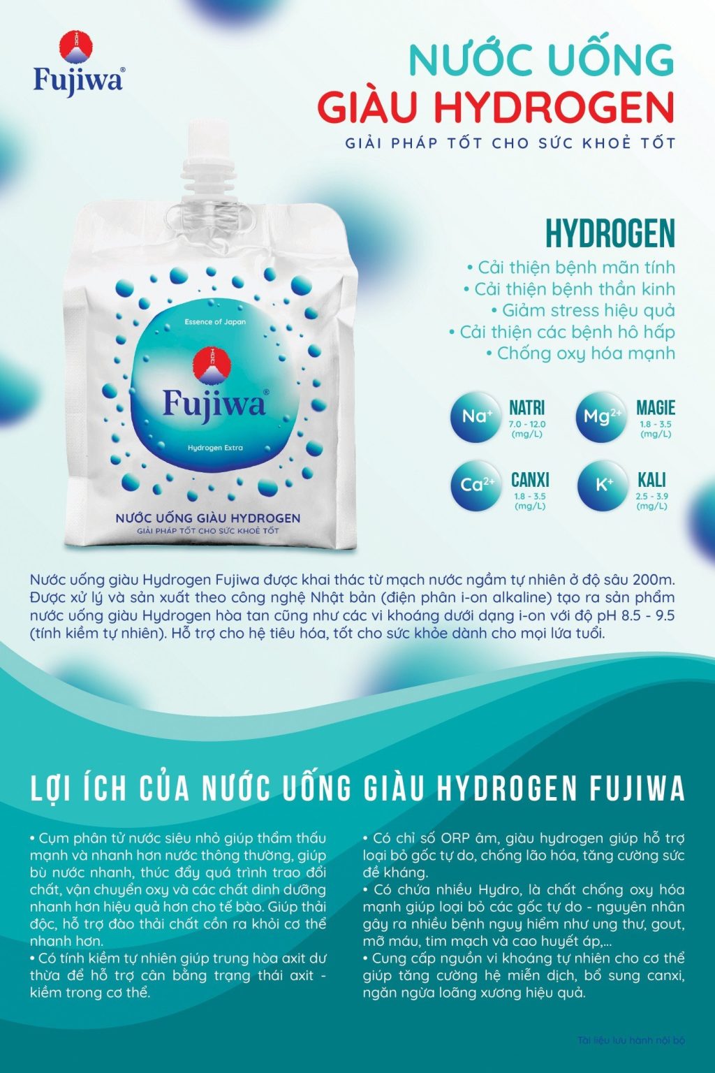 - Cấu trúc cụm phân tử nước siêu nhỏ giúp thẩm thấu nhanh. LỢI ÍCH NƯỚC UỐNG GIÀU HYDROGEN HYDROGEN FUJIWA