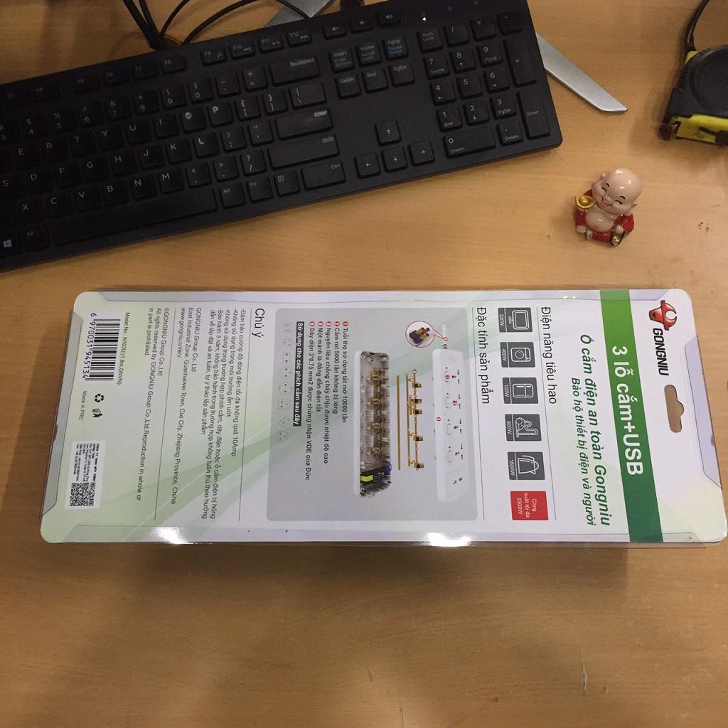 Ổ Cắm Điện Gongniu 3 Ổ Đa Năng + 2 USB 1 công tắc 2500W/10A Dây Dài 1.8m – N103U - Chính Hãng